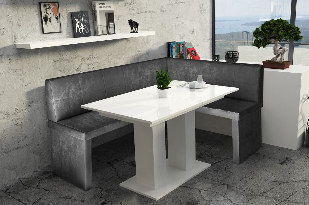 Eckbankgruppe 168x128 cm ROBIN L Vin.. Schwarz/ Tisch DANTE Weiss HGL