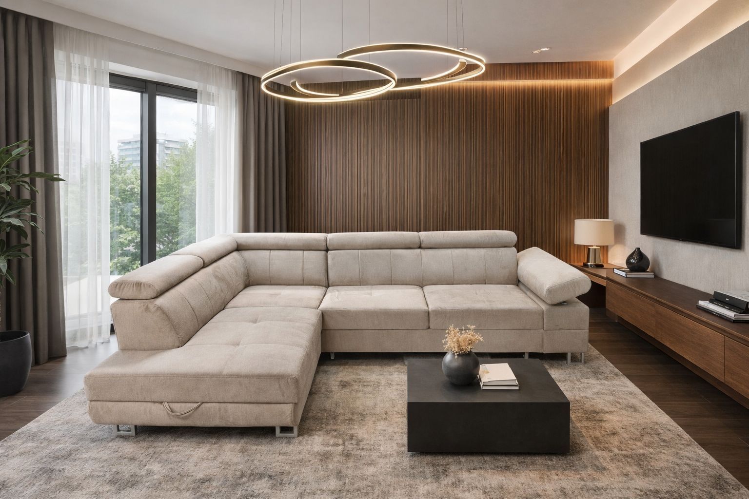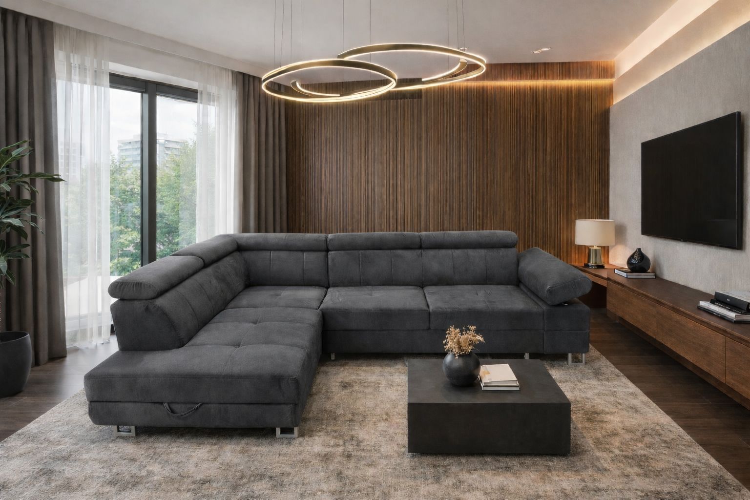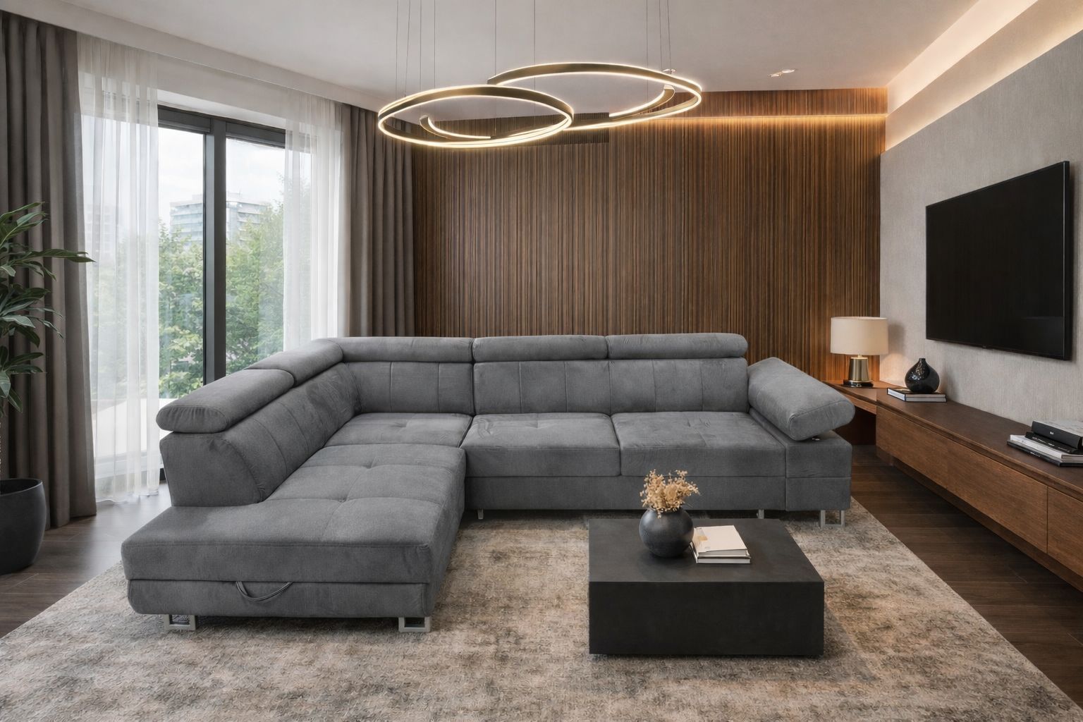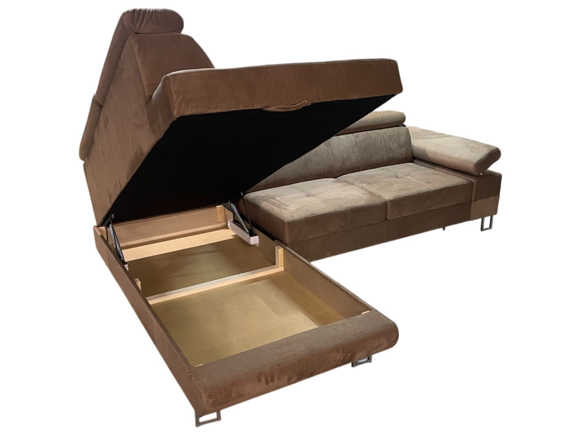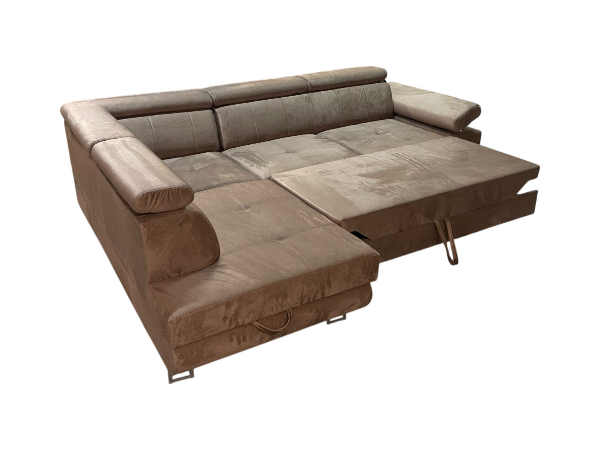 Komfortable Eckcouch mit Schlaffunktion, verstellbaren Kopfstützen