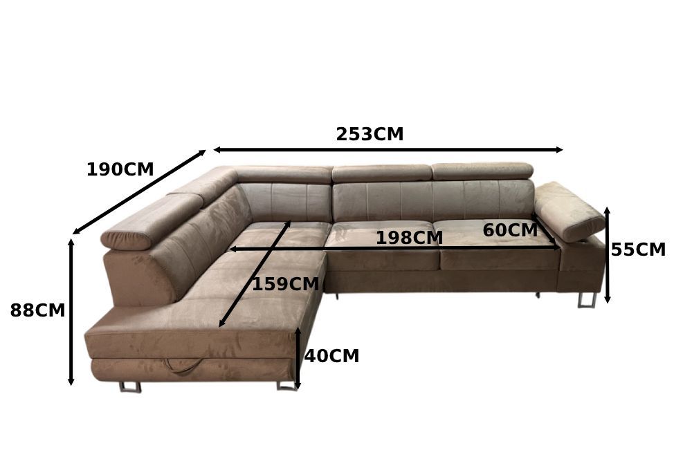 Eckcouch Bolivar schlaffunktion 253cm verstellbare lopfstützen wasserdichter Stoff