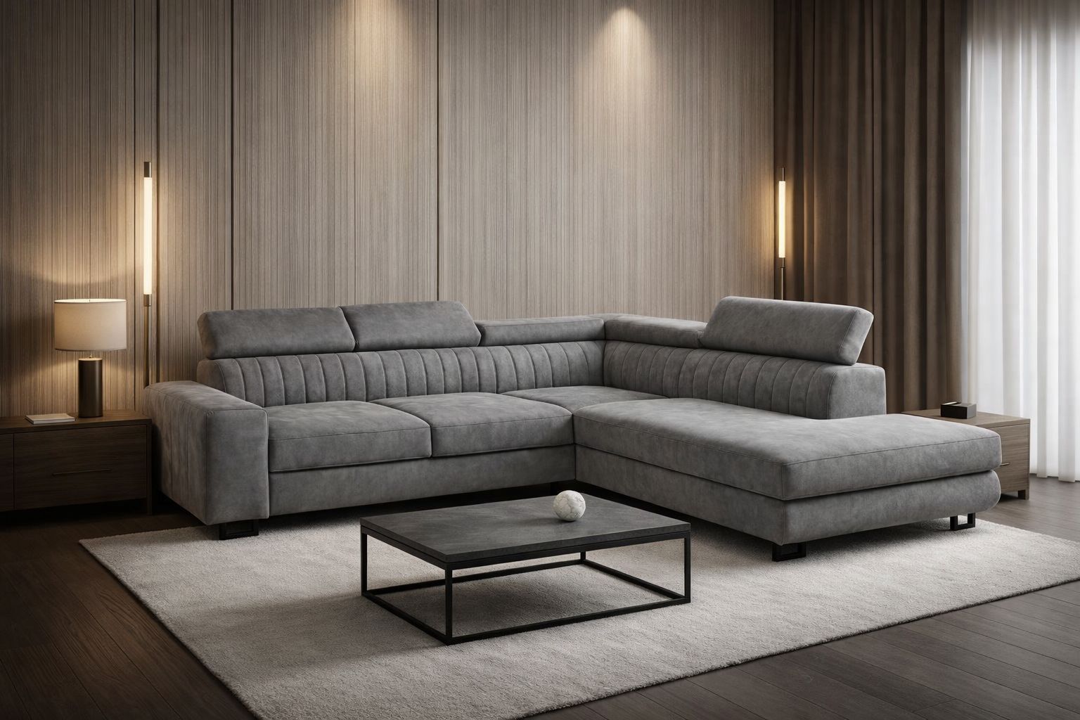 Komfortable Eckcouch mit Schlaffunktion, verstellbaren Kopfstützen premium stoff