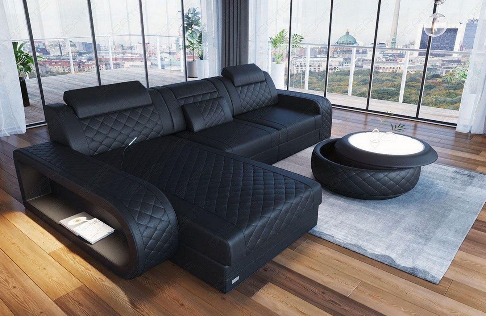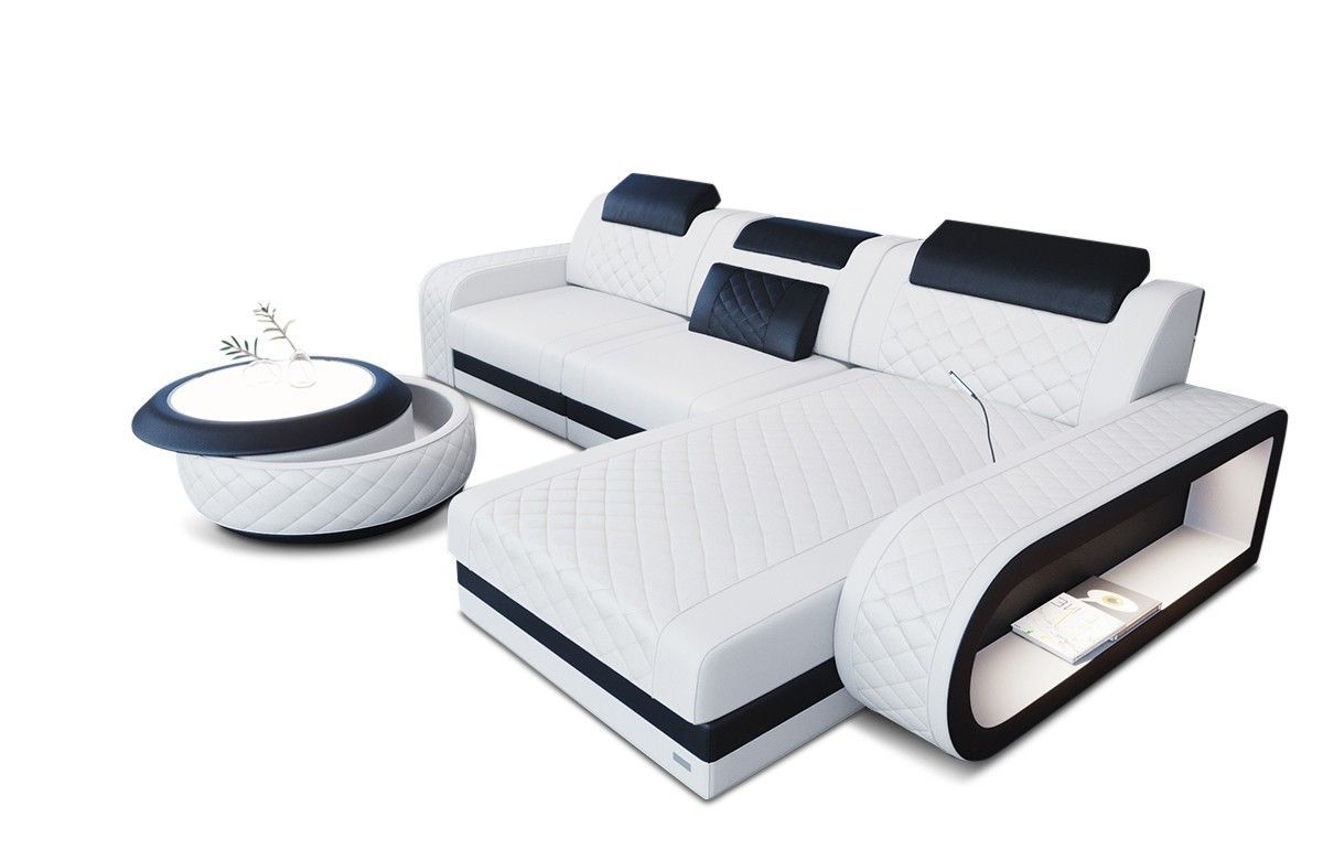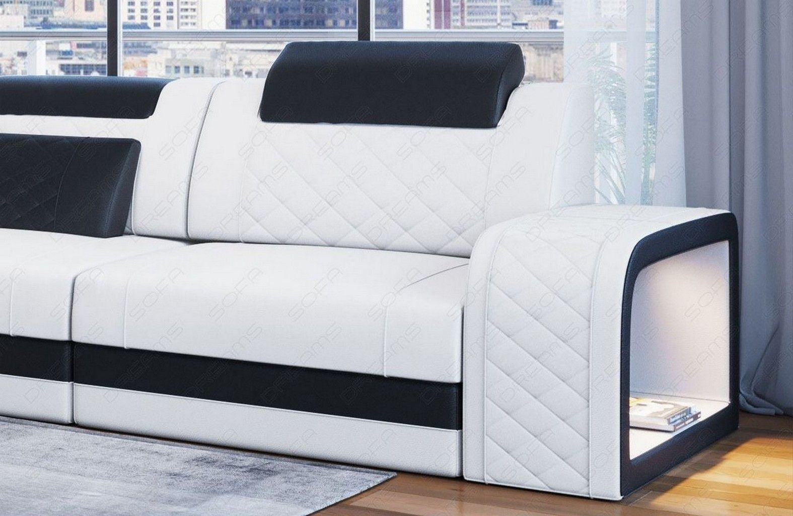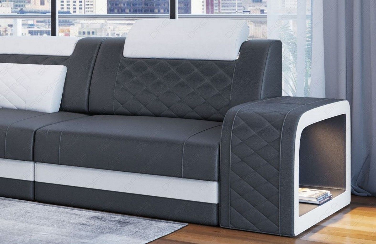 Sofa Dreams Eckcouch Leder Sofa Ledersofa LED Ecksofa Weiß Schwarz Ledercouch Berlin L Form