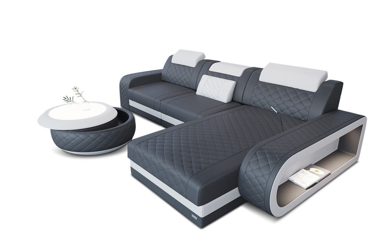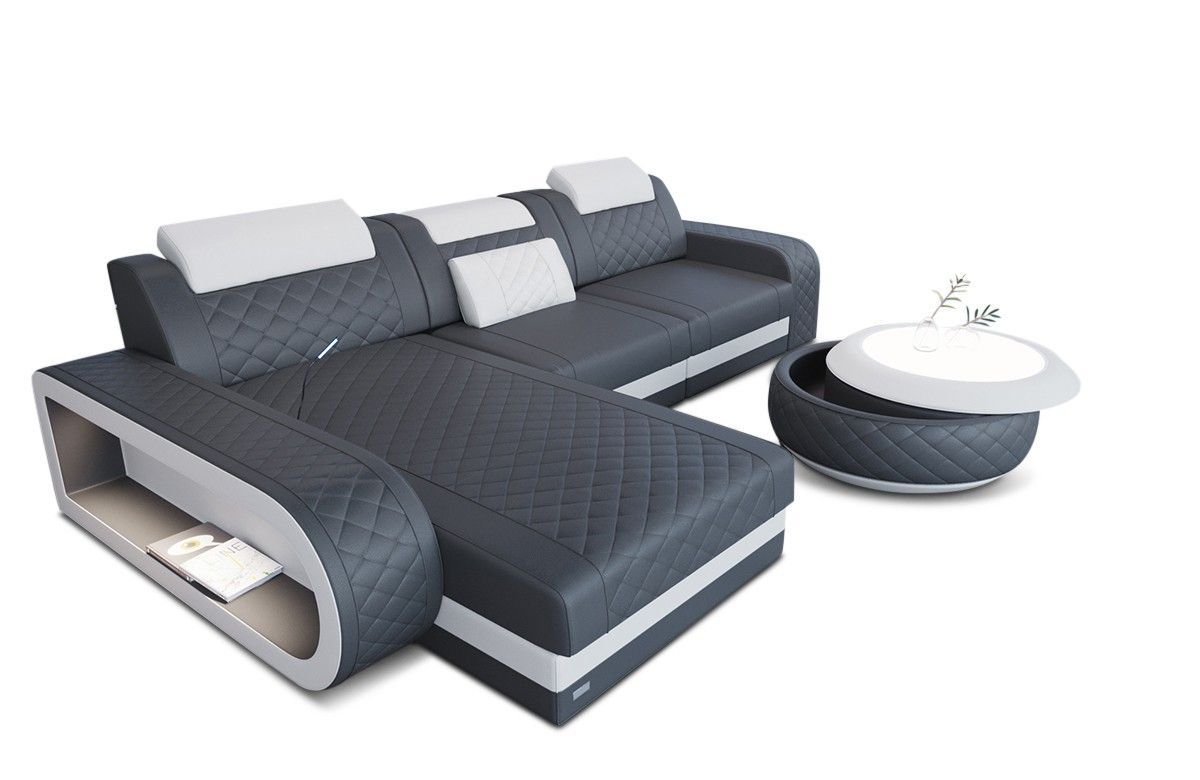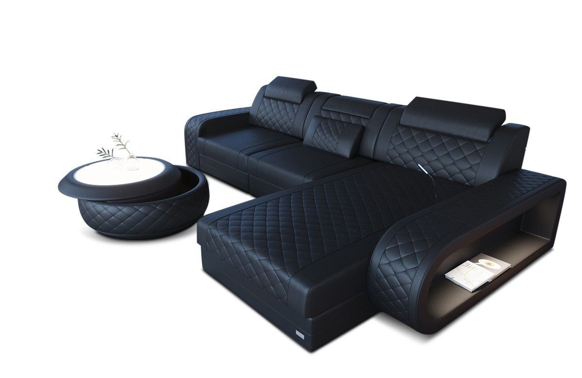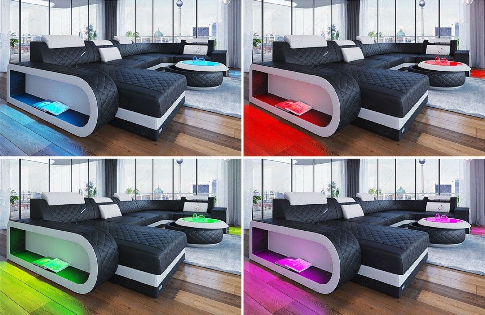 Sofa Dreams Eckcouch Leder Sofa Ledersofa LED Ecksofa Weiß Schwarz Ledercouch Berlin L Form