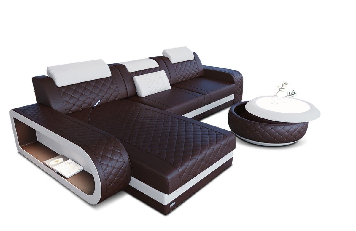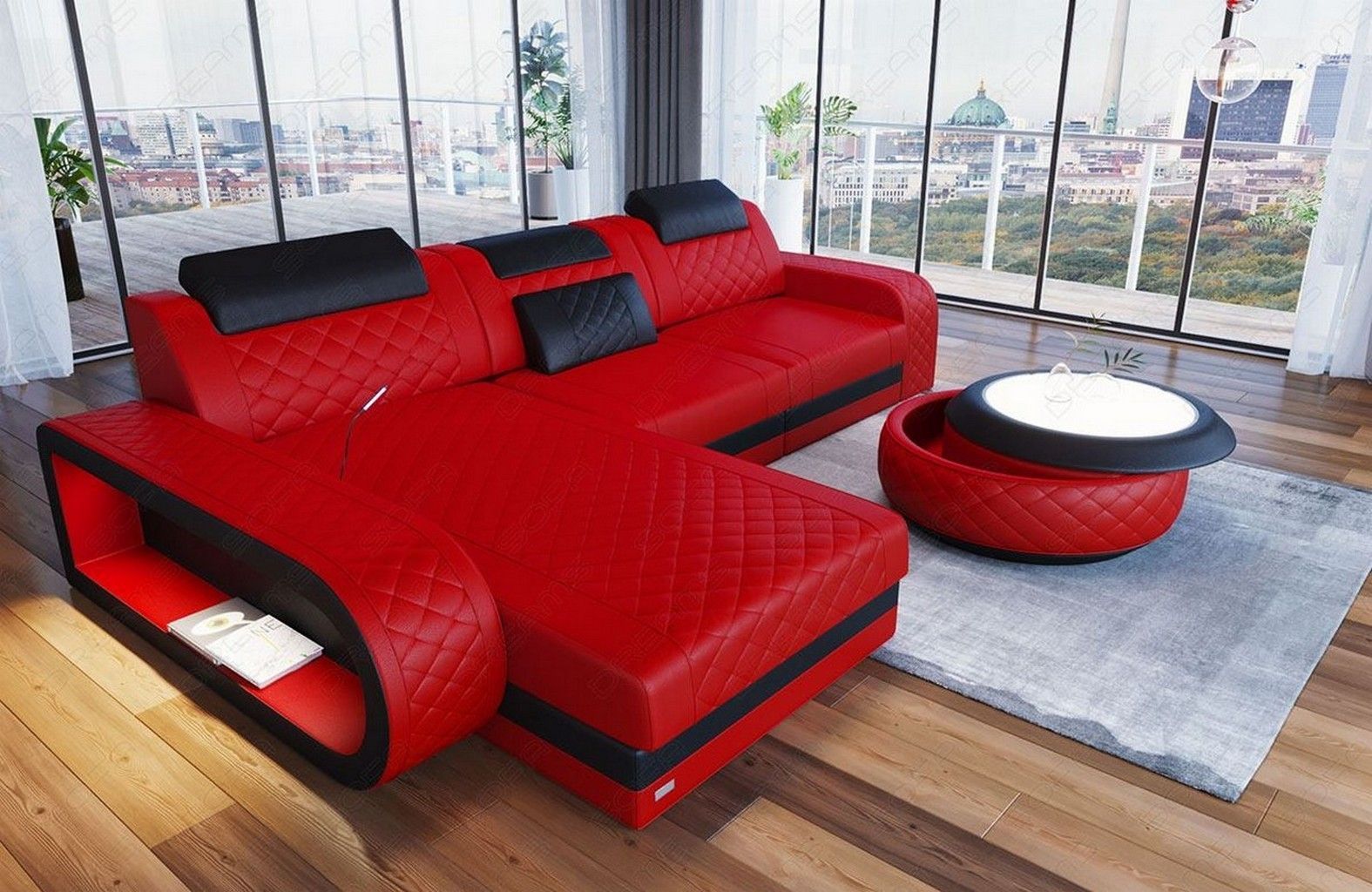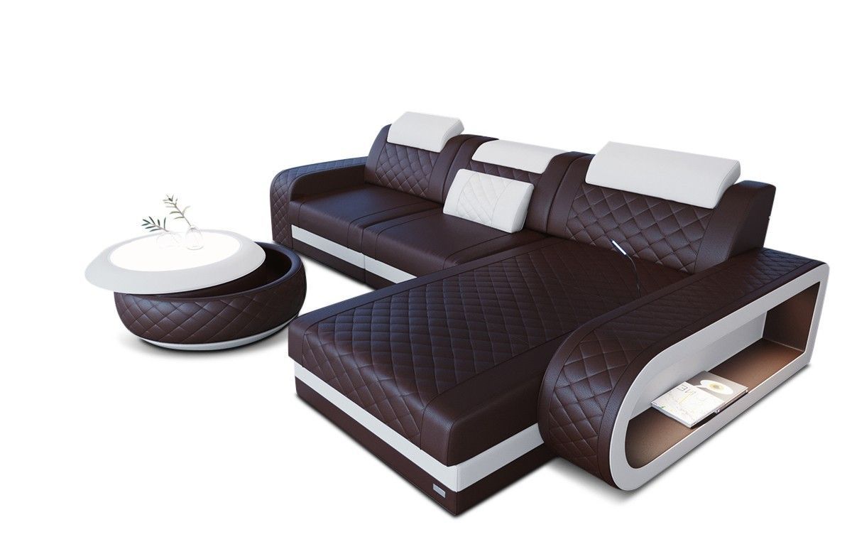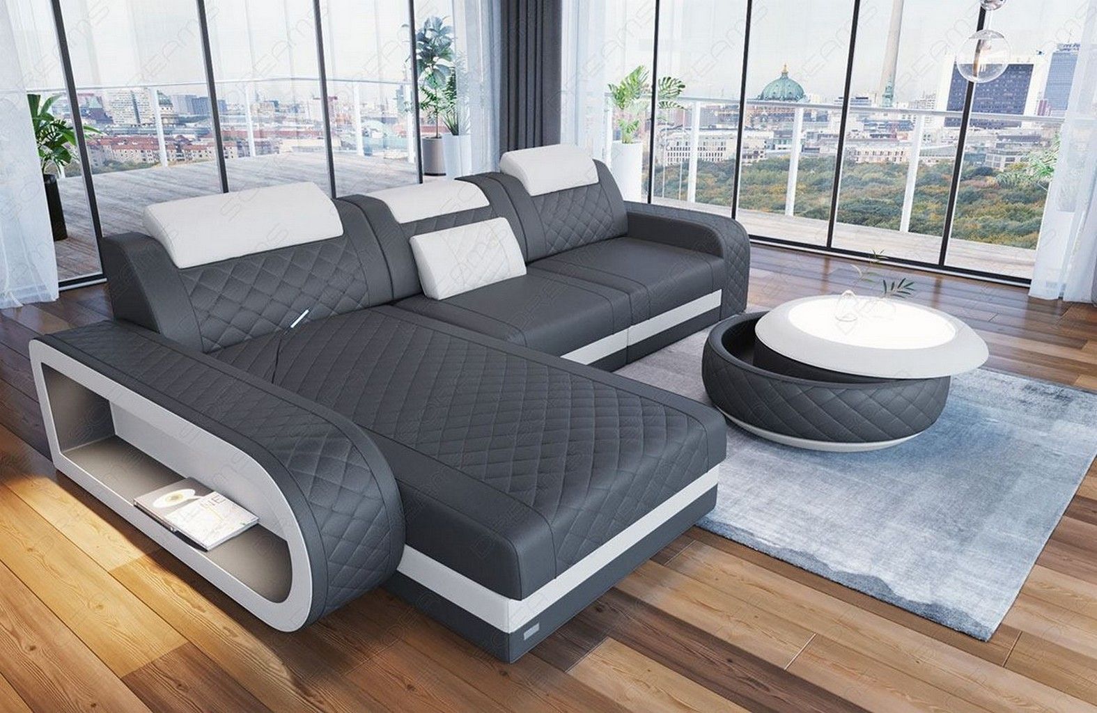 Sofa Dreams Eckcouch Leder Sofa Ledersofa LED Ecksofa Weiß Schwarz Ledercouch Berlin L Form
