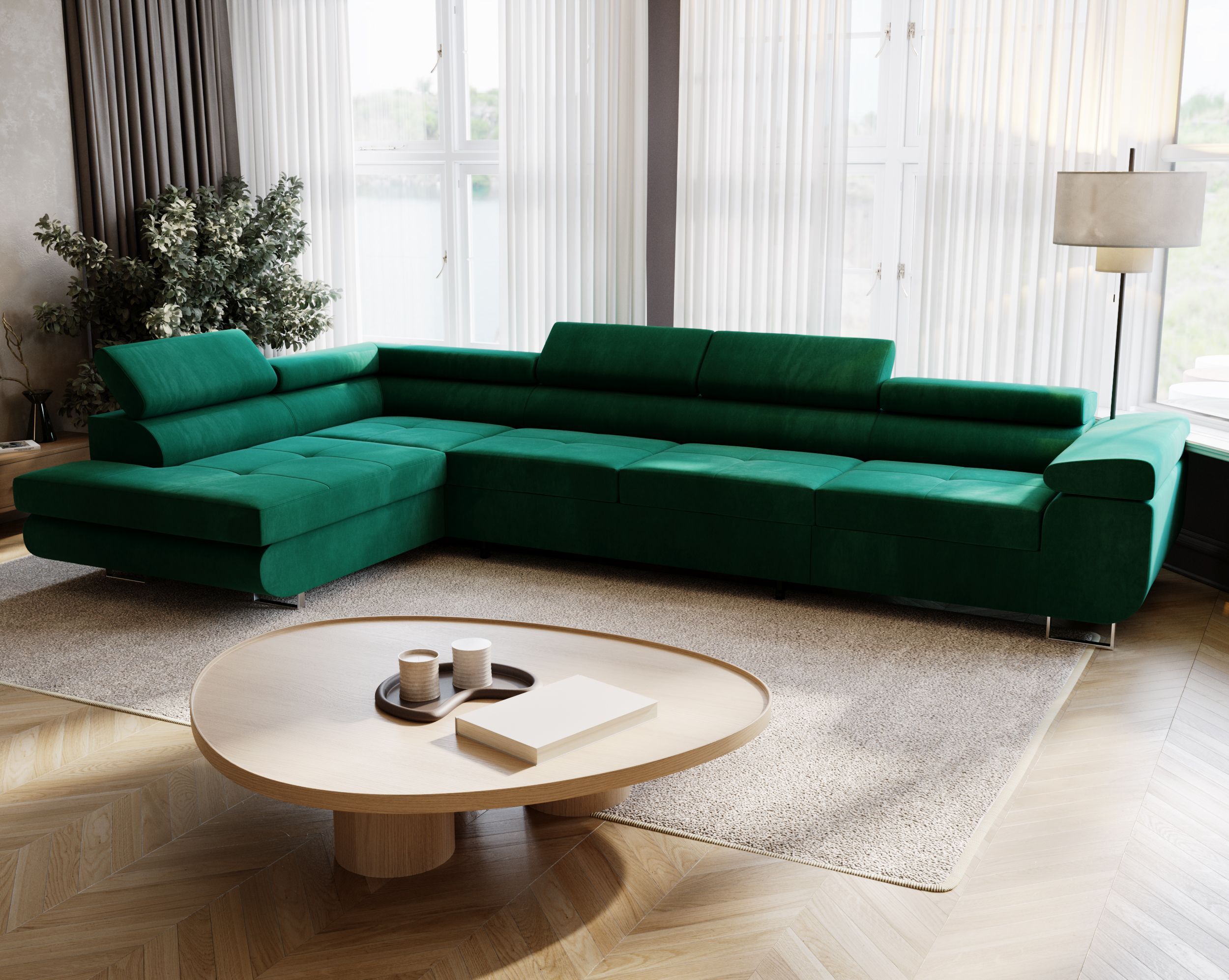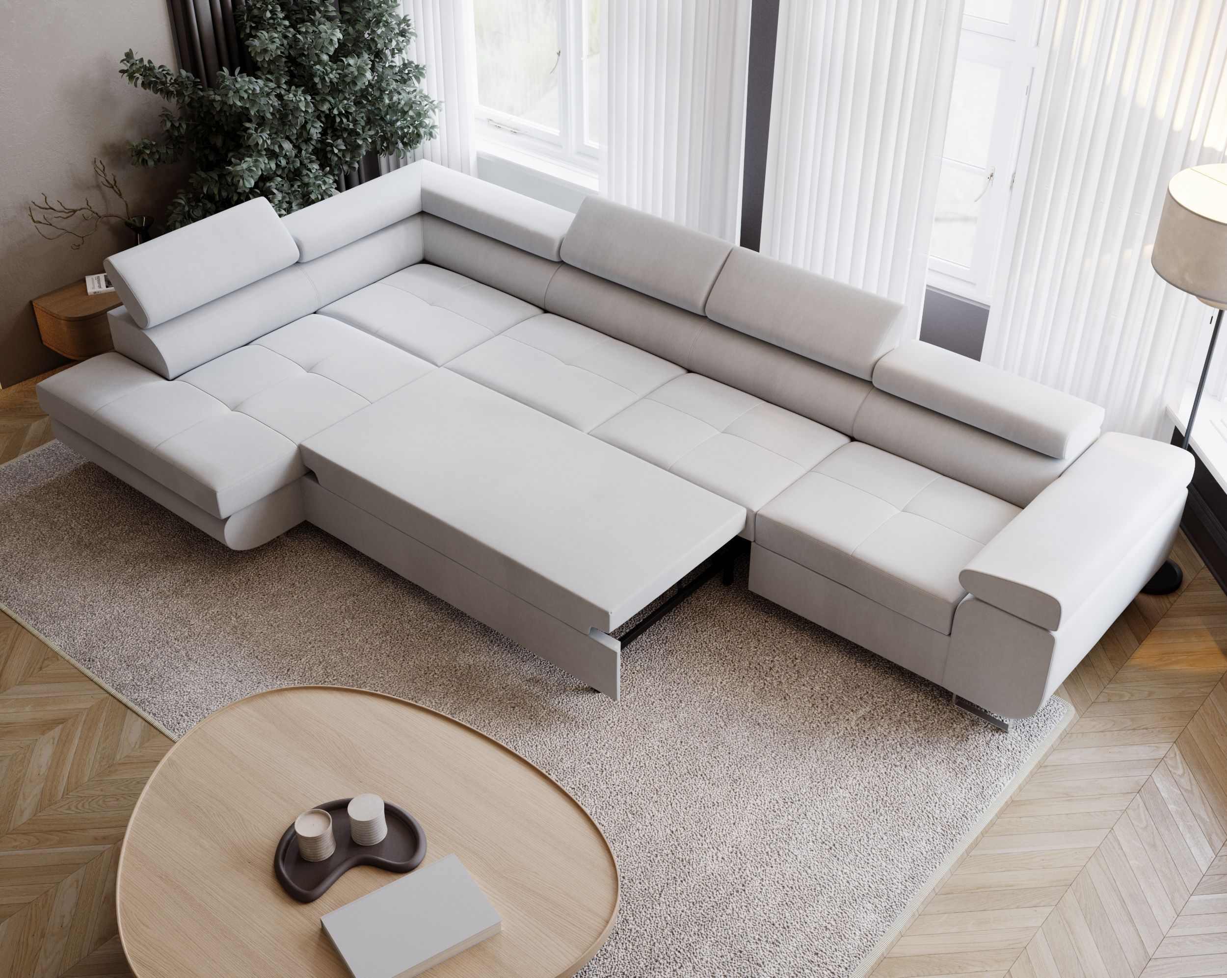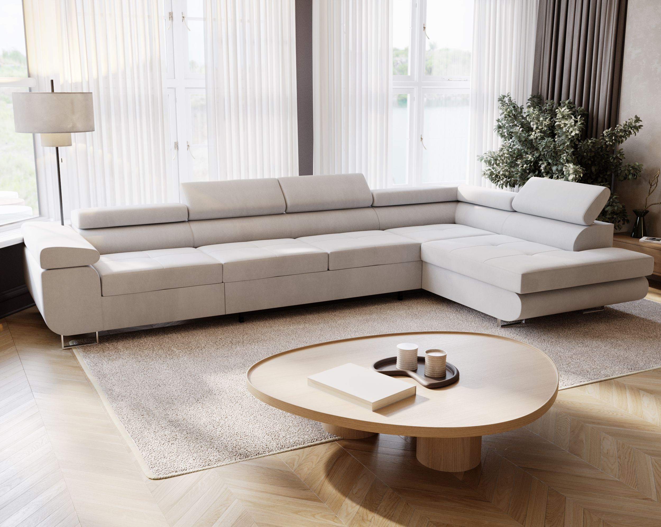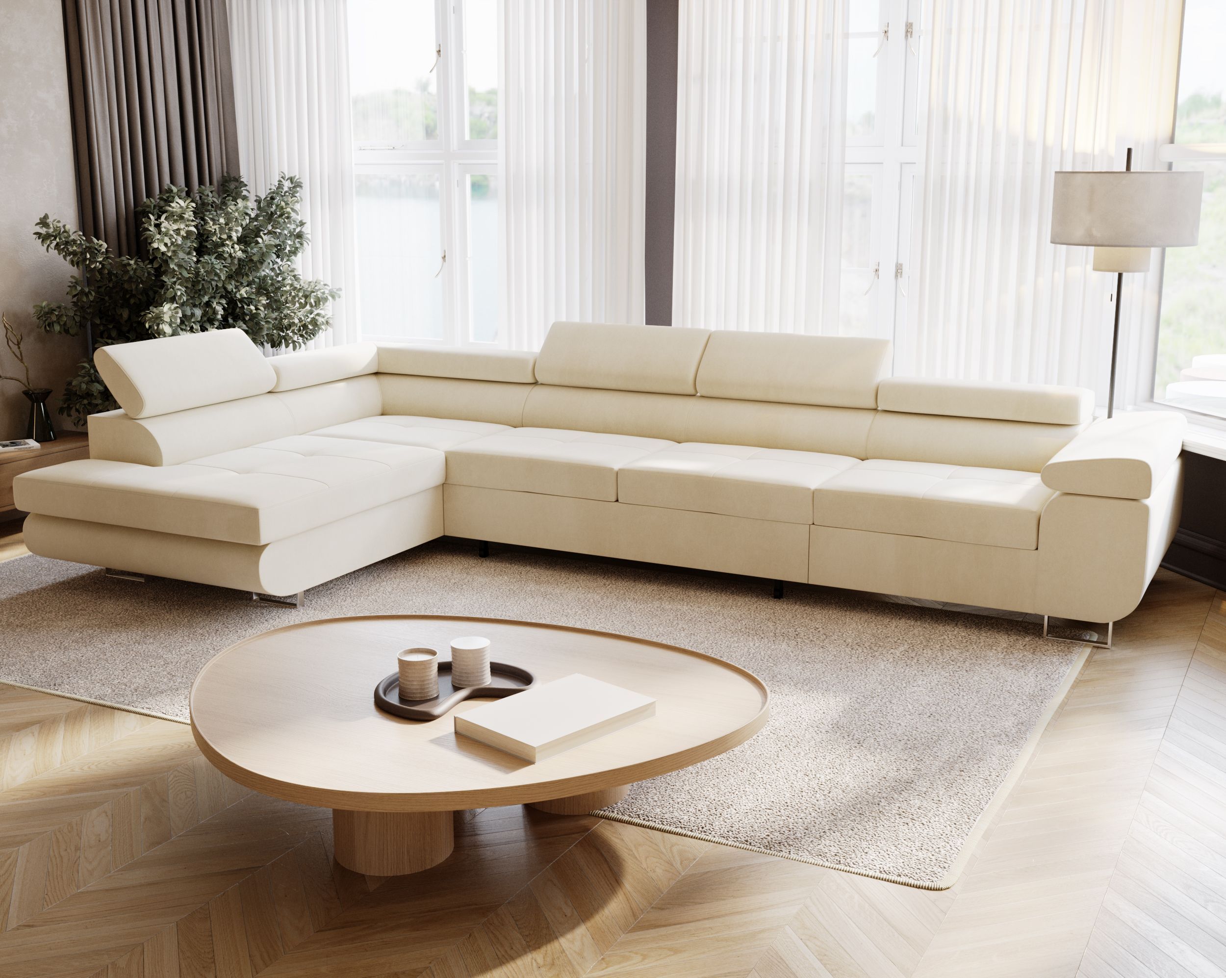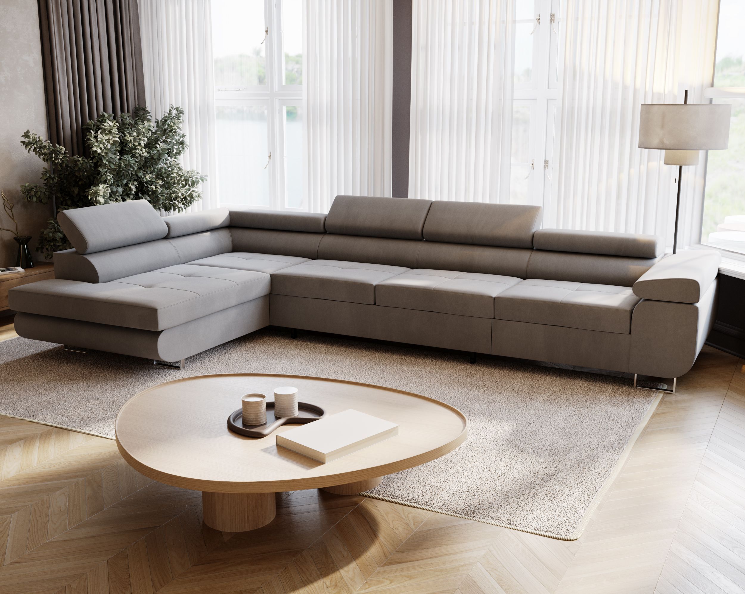 Eckcouch LIVIO XL Schlaffunktion 350 cm verstellbare Kopfstützen wasserdichter Stoff