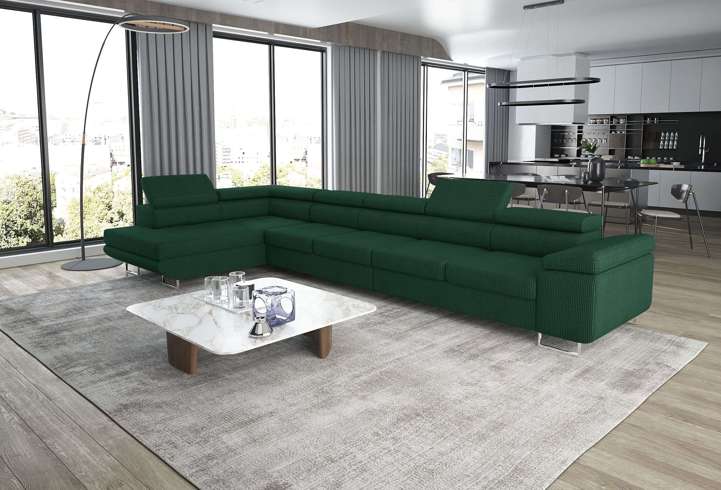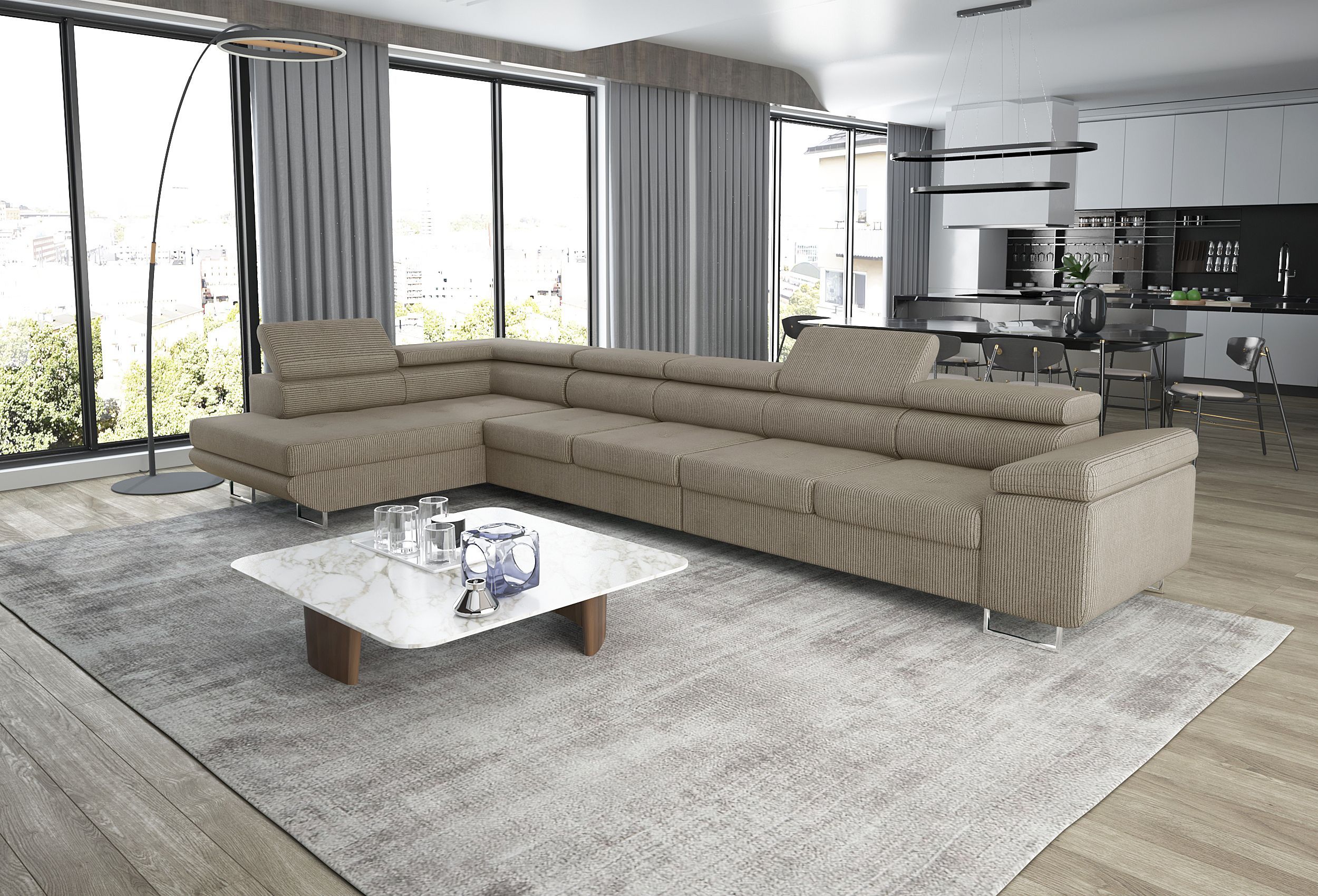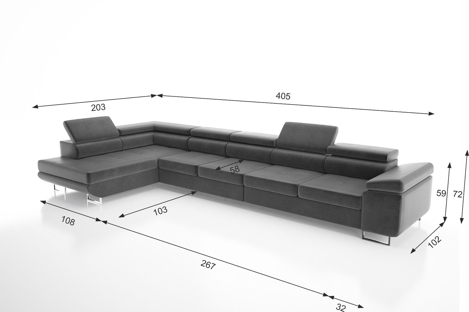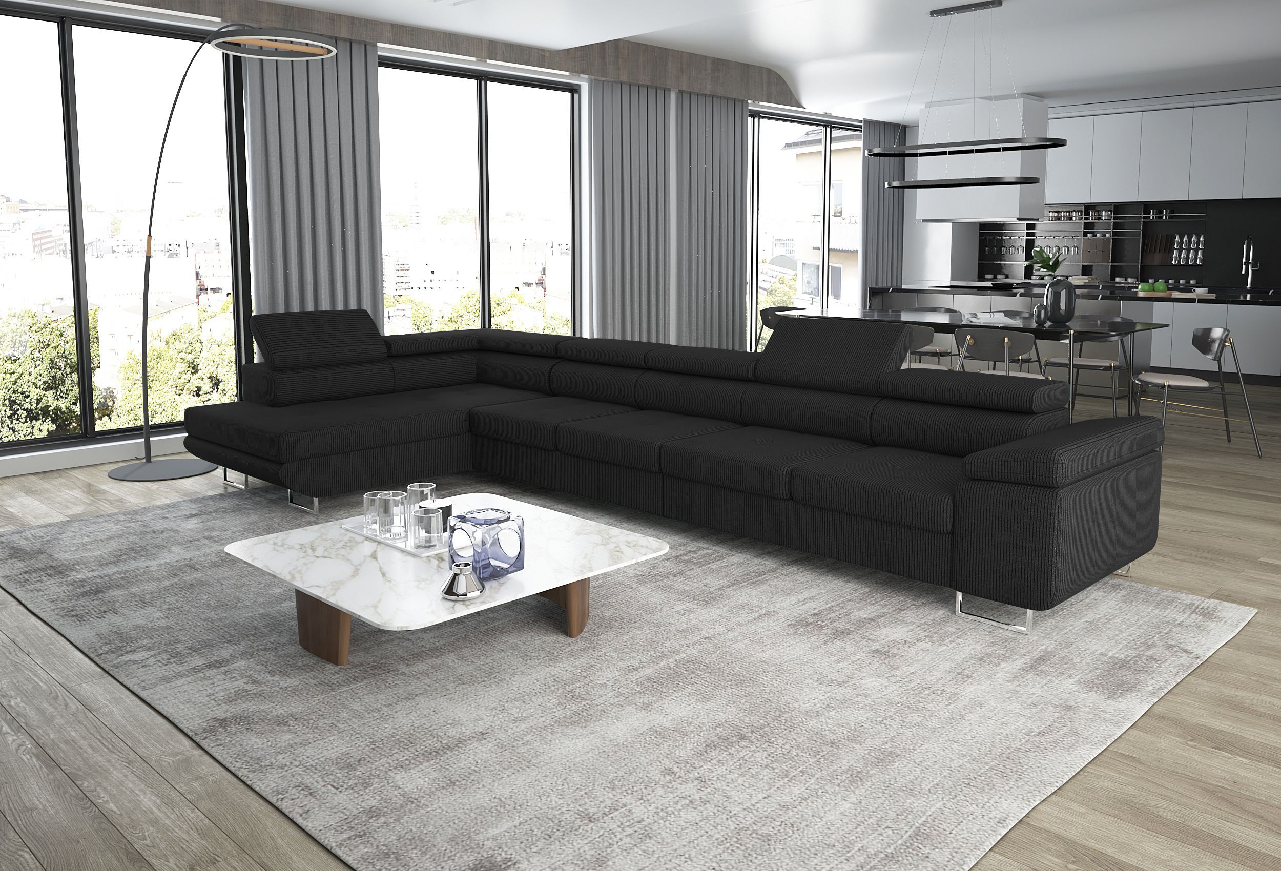 Eckcouch VANITY MAXI 405 cm mit Schlaffunktion Bettkasten verstellbare Kopfstützen