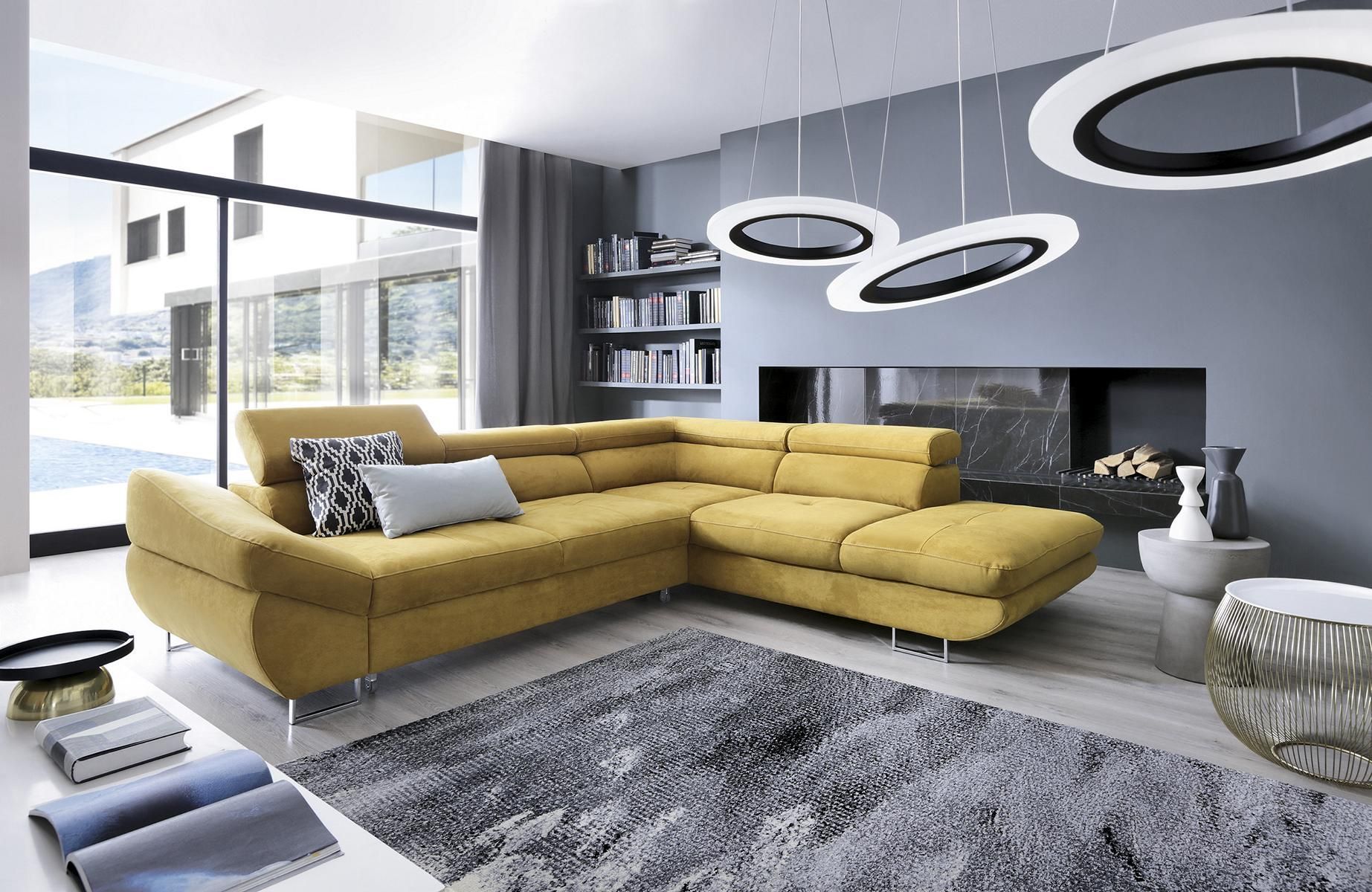 Ecke Couch Sets L-Form Sofa weiche Polsterung Wohnbereich Möbel Textil Gelb Neu