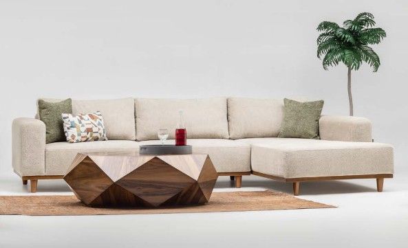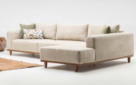 Eckgarnitur Ecksofa L form Stoffsofa Polstersofa Couch Sofa Beige