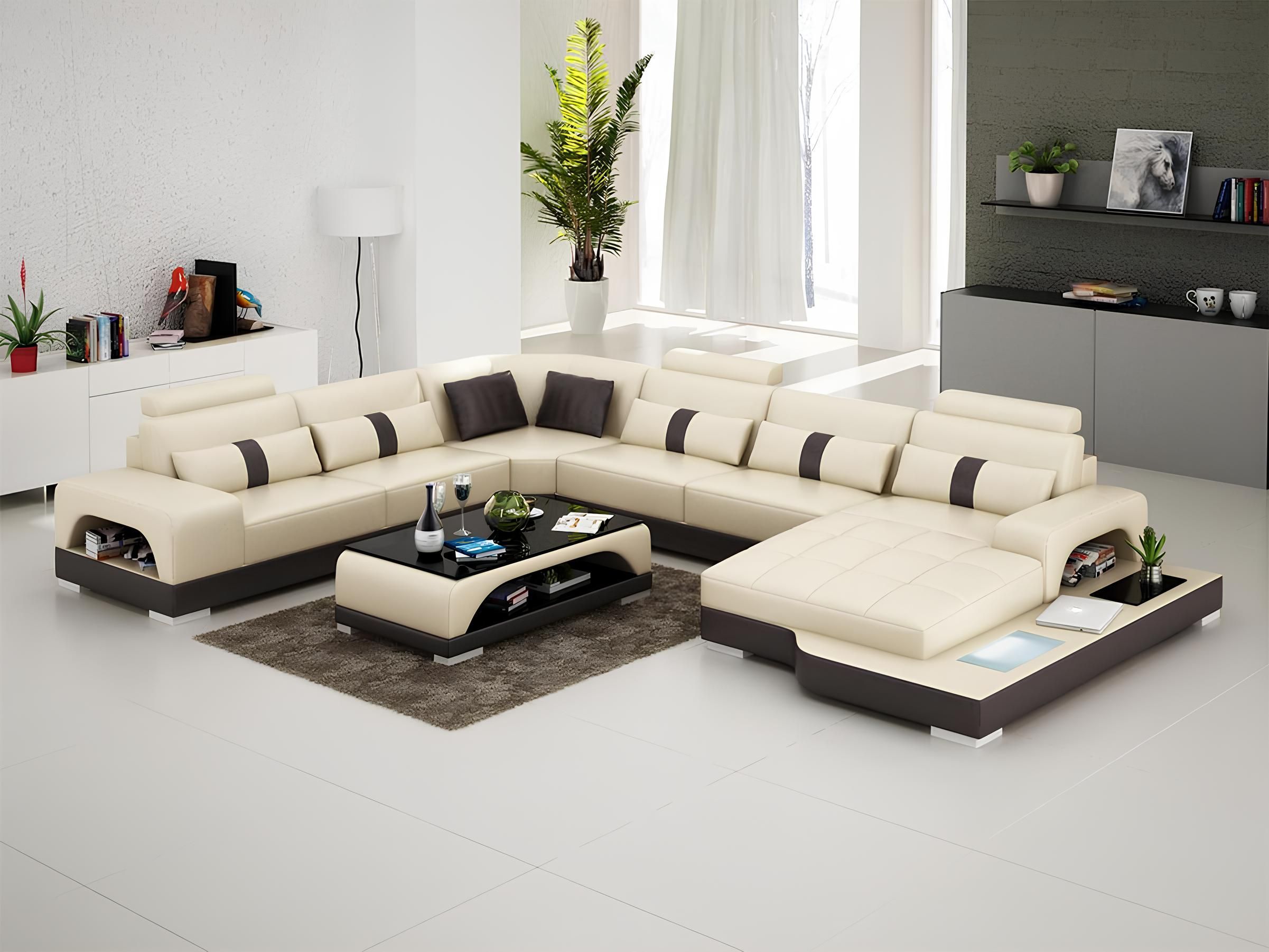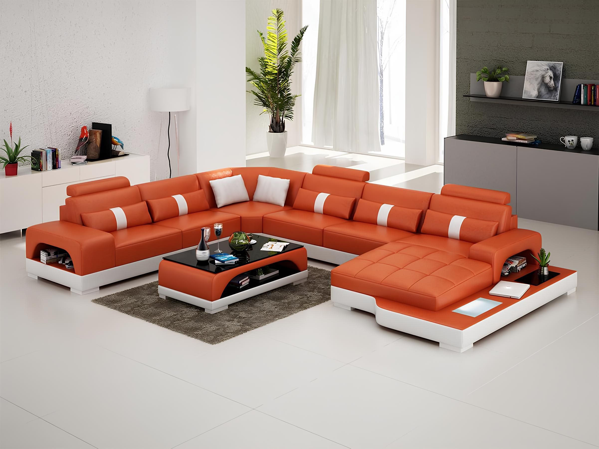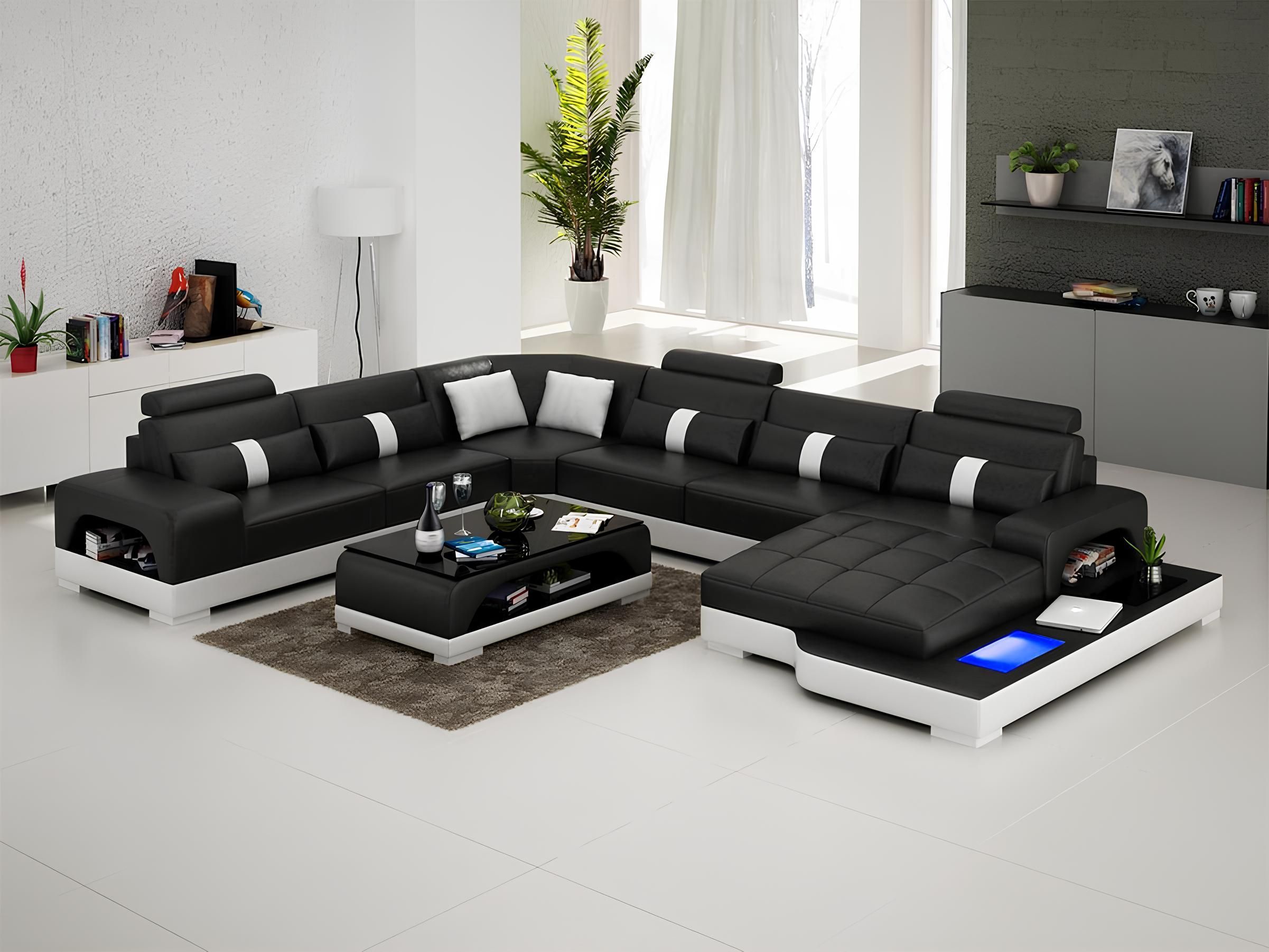 Eckgarnitur Ledersofa Design Luxus Wohnlandschaft led sofa couch Polster Ecksofa