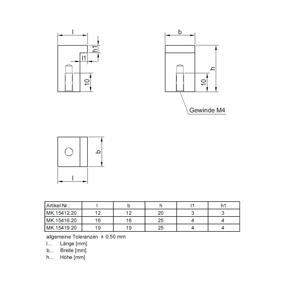 Eckiger Möbelknopf massiv Edelstahl matt gebürstet Schrankknopf Modell Memphis