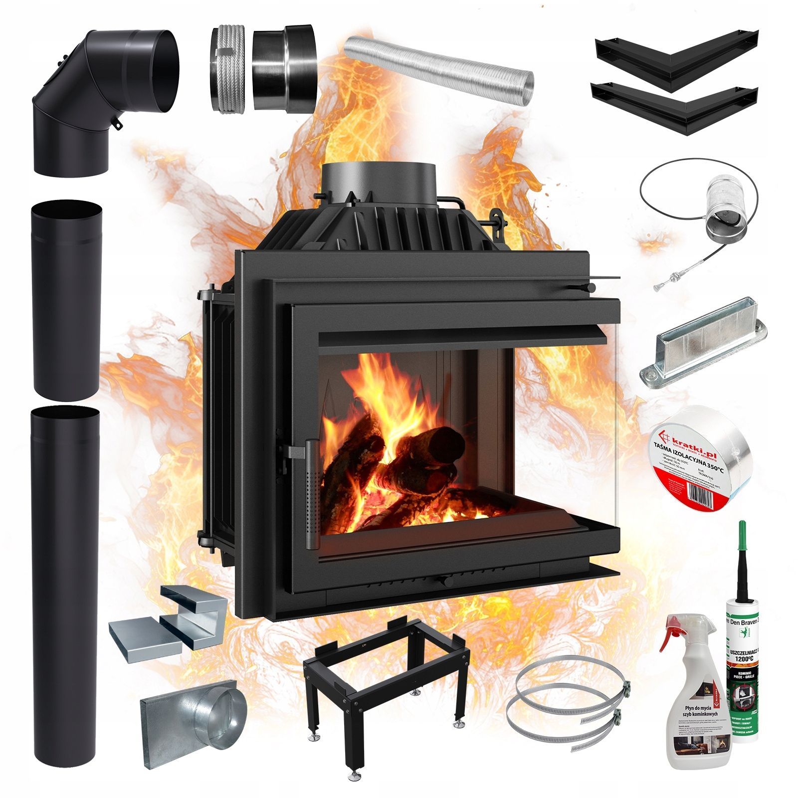 Eckkamineinsatz KRATKI SIMPLE 8kW Ø200 Rechts Öko Gusseisen SET