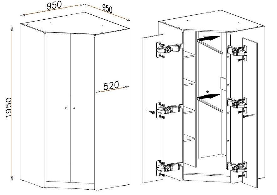 Eckschrank Alessio 02E | Kleiderschrank modern mit Kleiderstange & Einlageböden