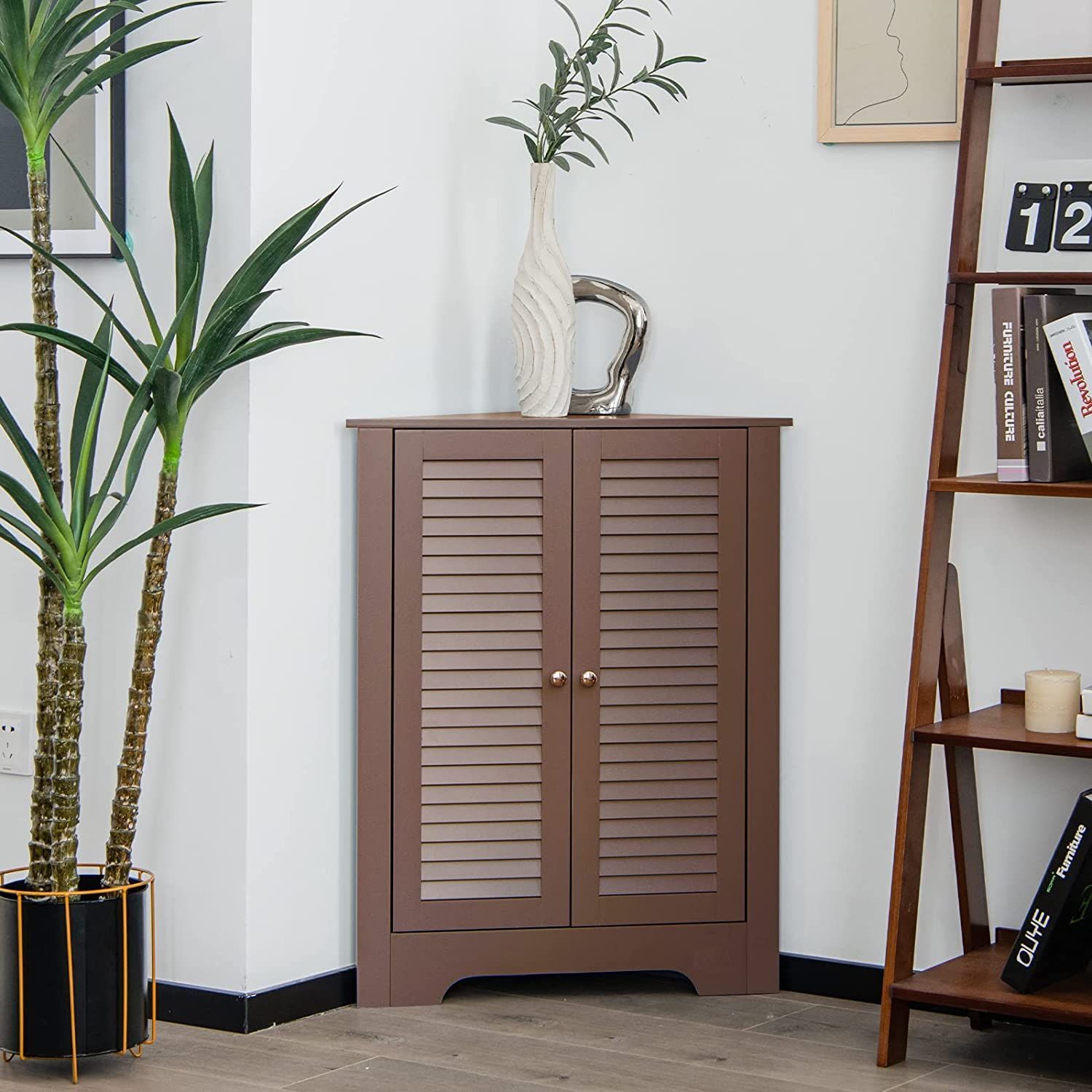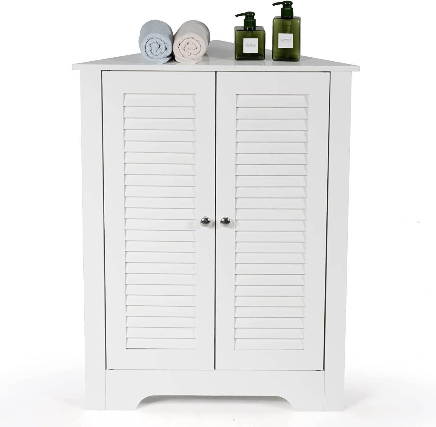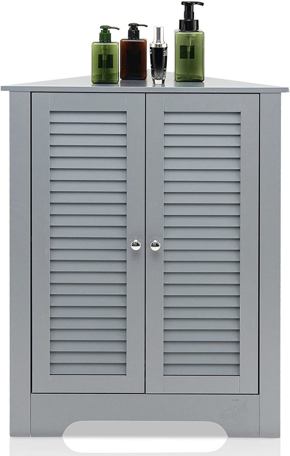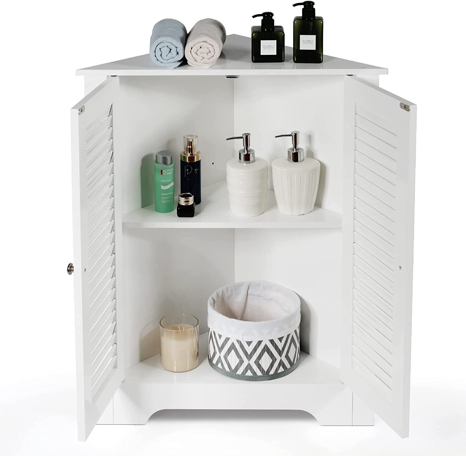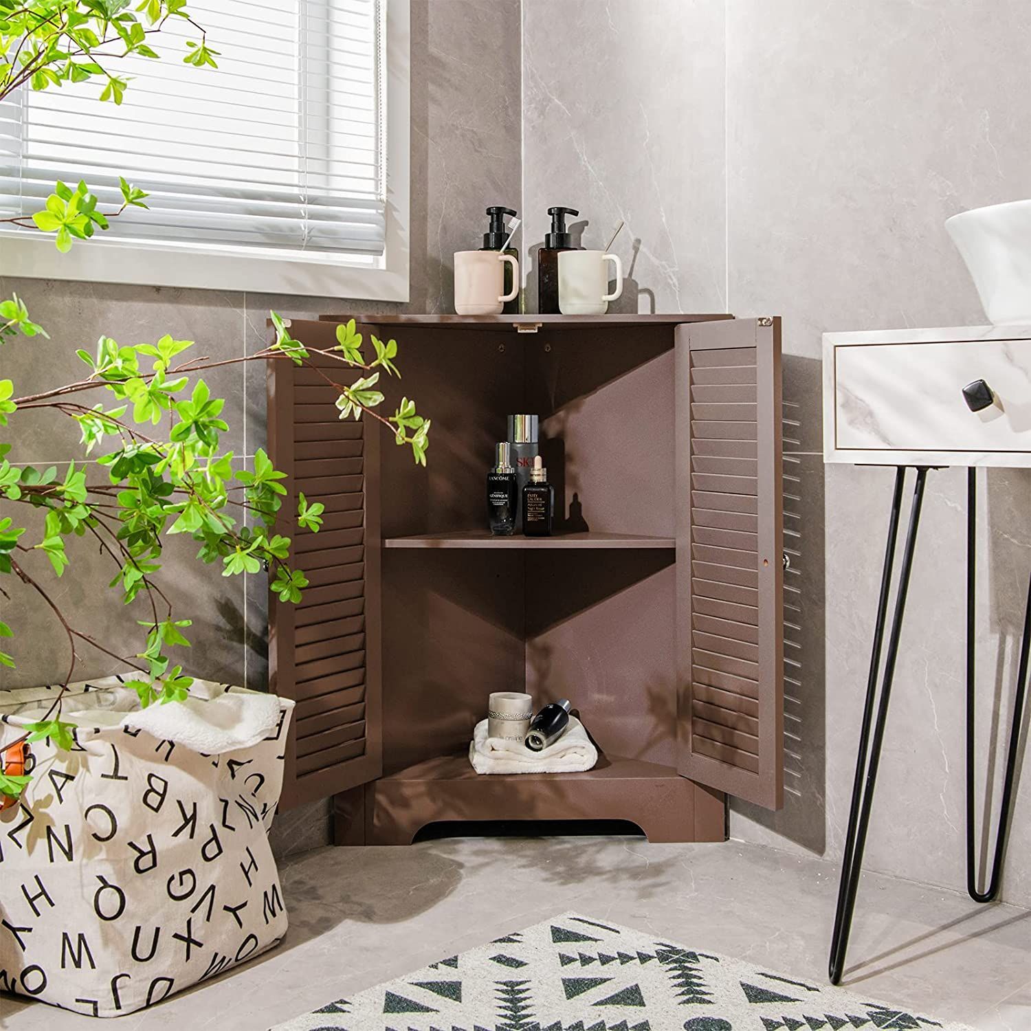 Eckschrank Lamellentür mit höhenverstellbarem Regal, Bodenschrank für Badezimmer