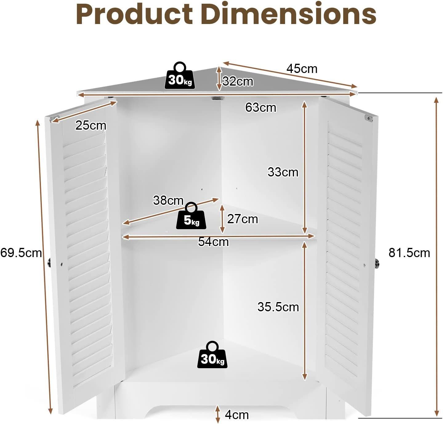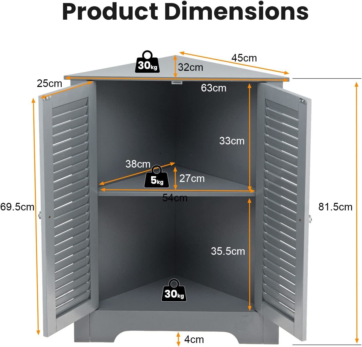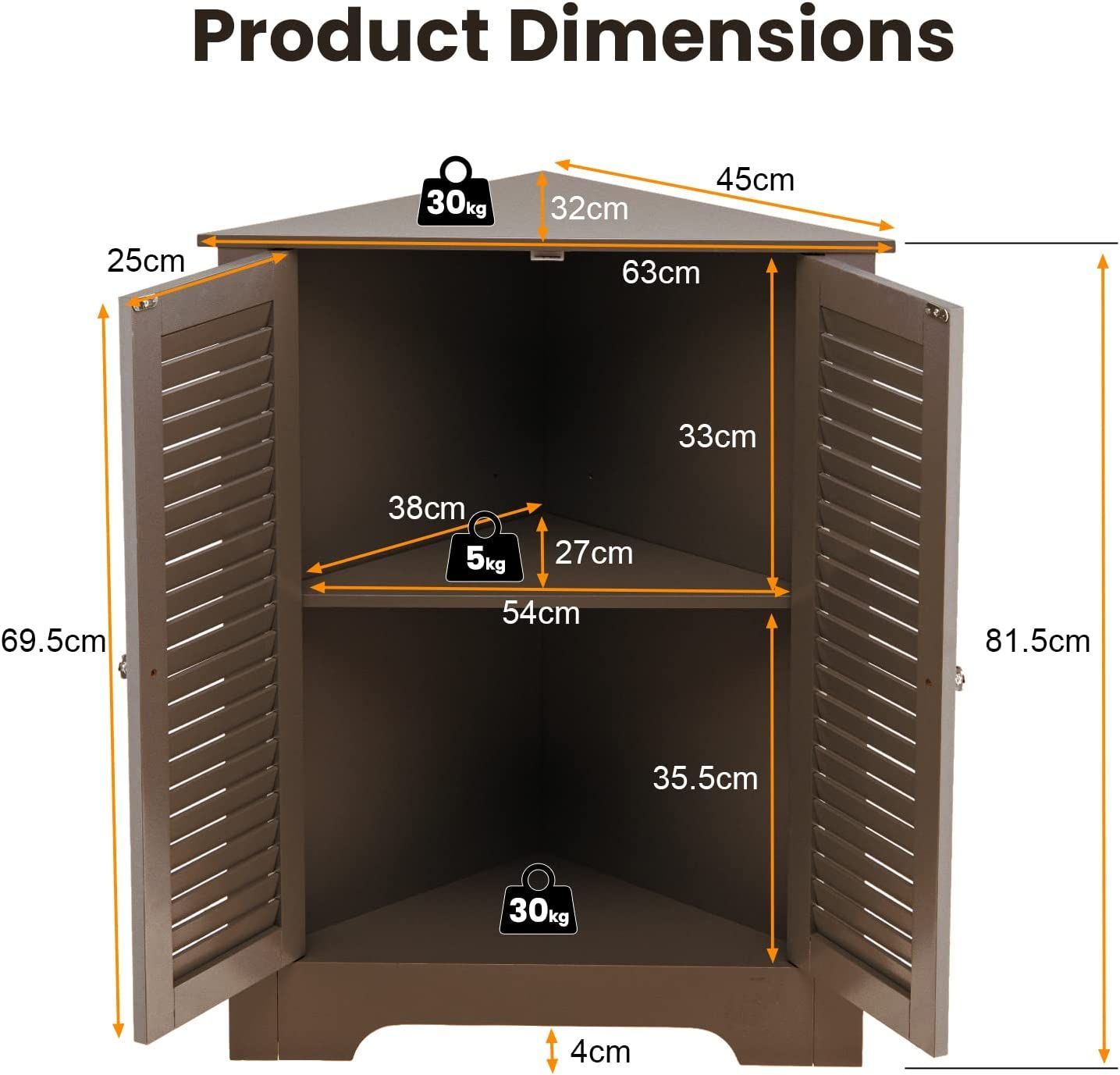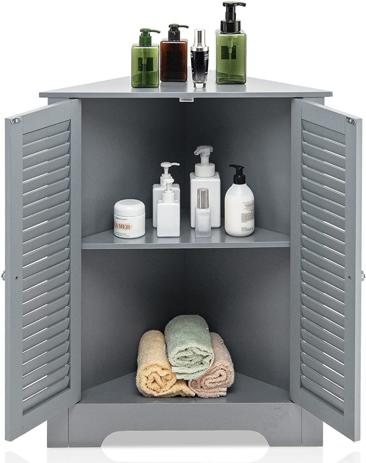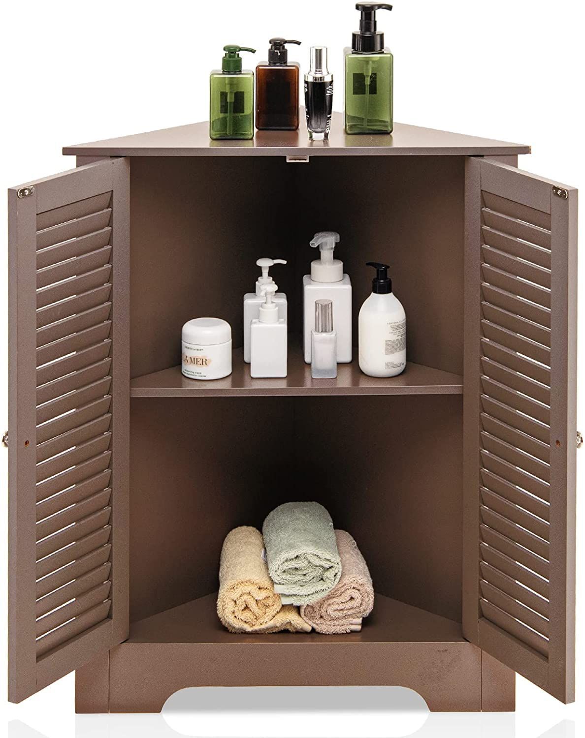 Eckschrank Lamellentür mit höhenverstellbarem Regal, Bodenschrank für Badezimmer
