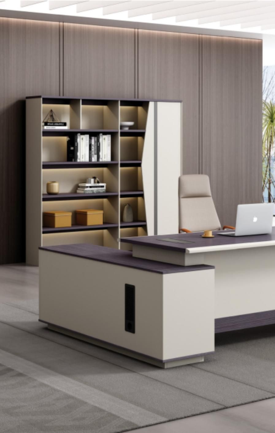 Stilvolle Ecke Büro Schreibtisch Luxus Holzmöbel Arbeit Schreibtisch beige Tisch