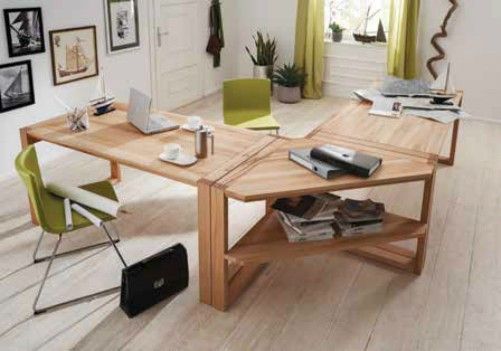 Eckschreibtisch Arcona mit 3 Schreibtischen aus massiver lackierter Kernbuche