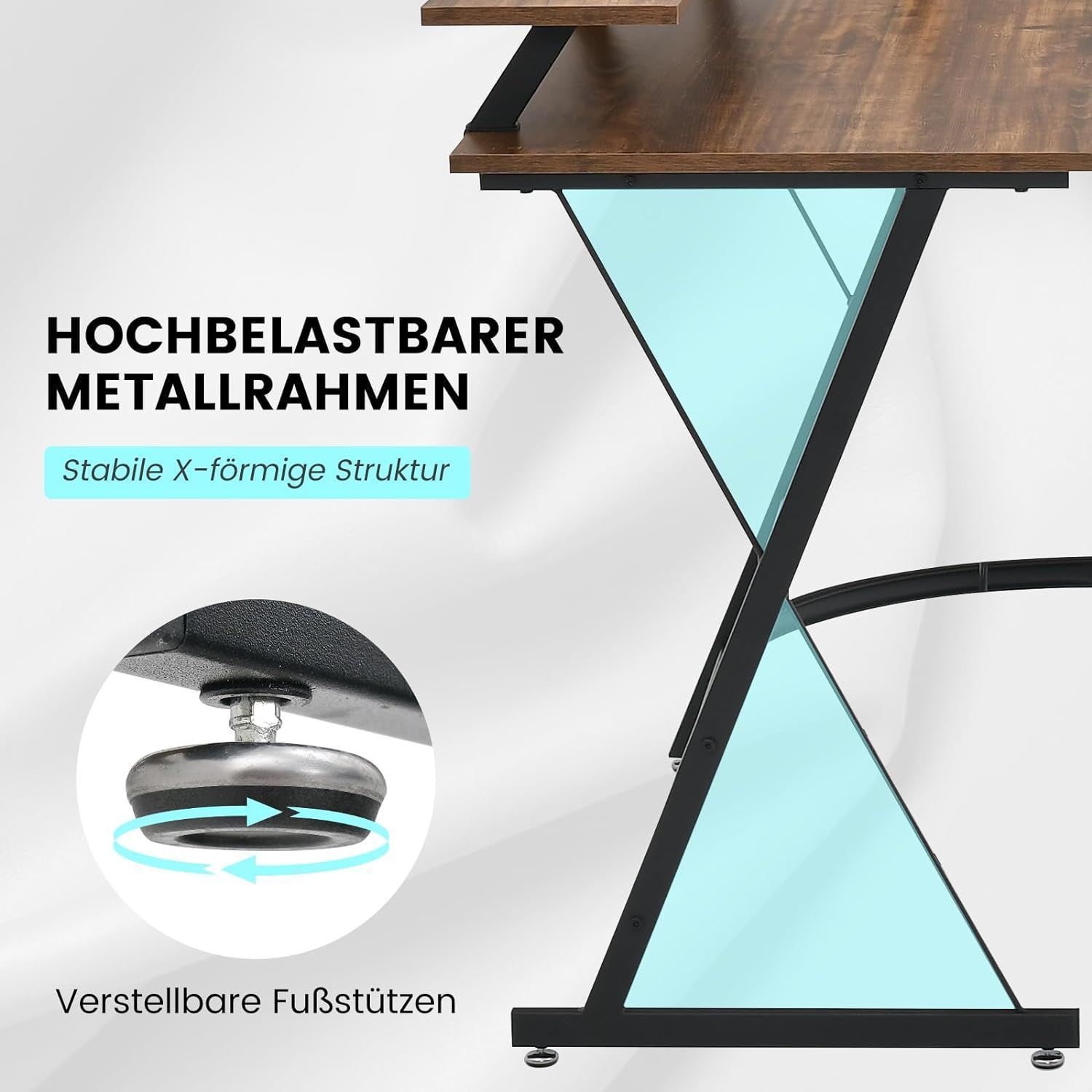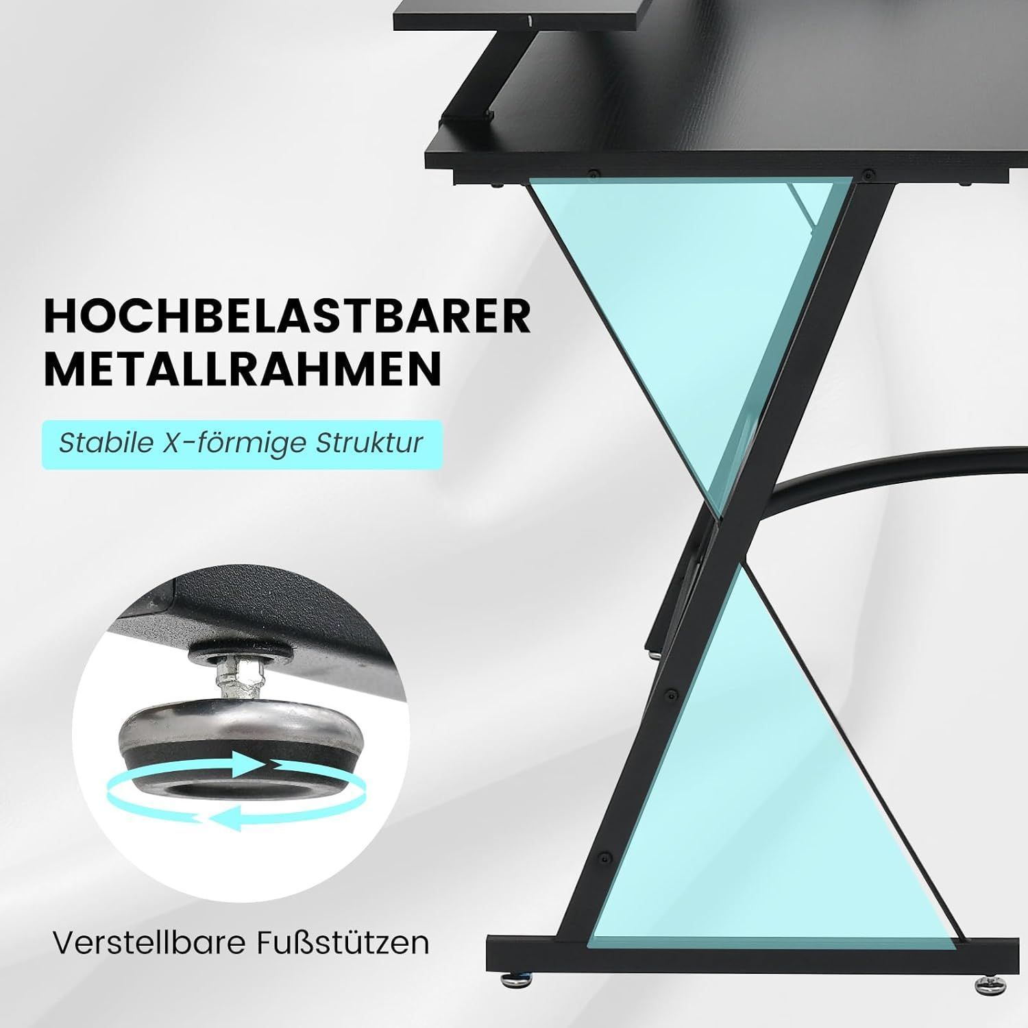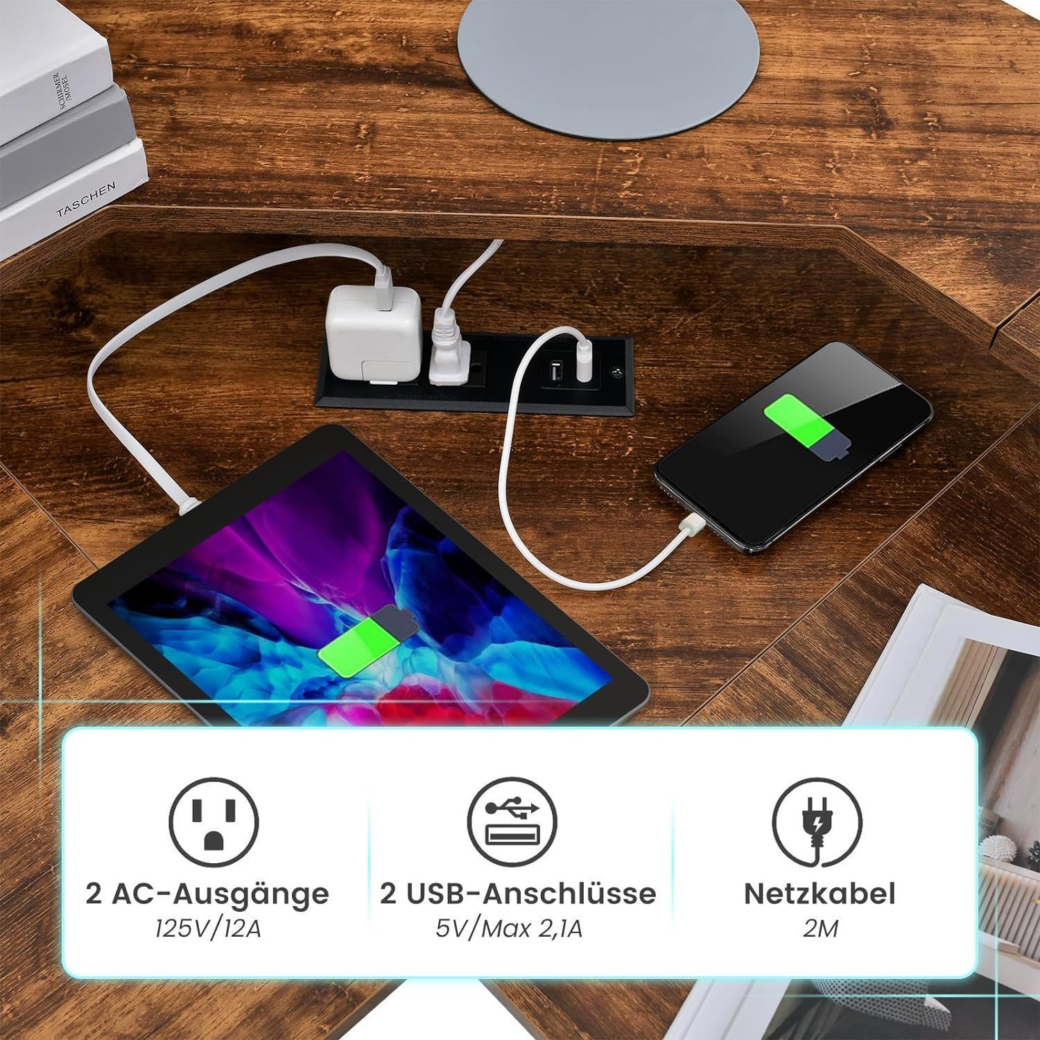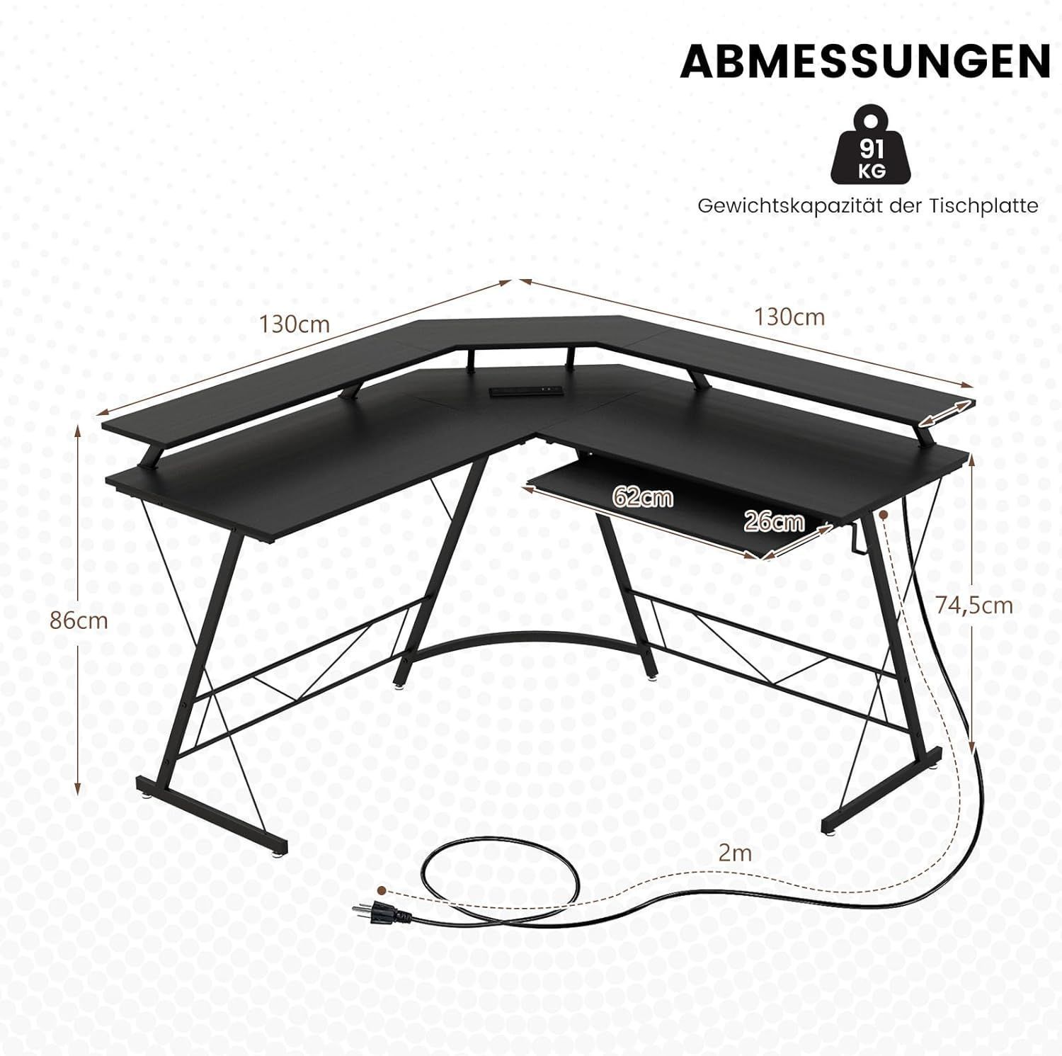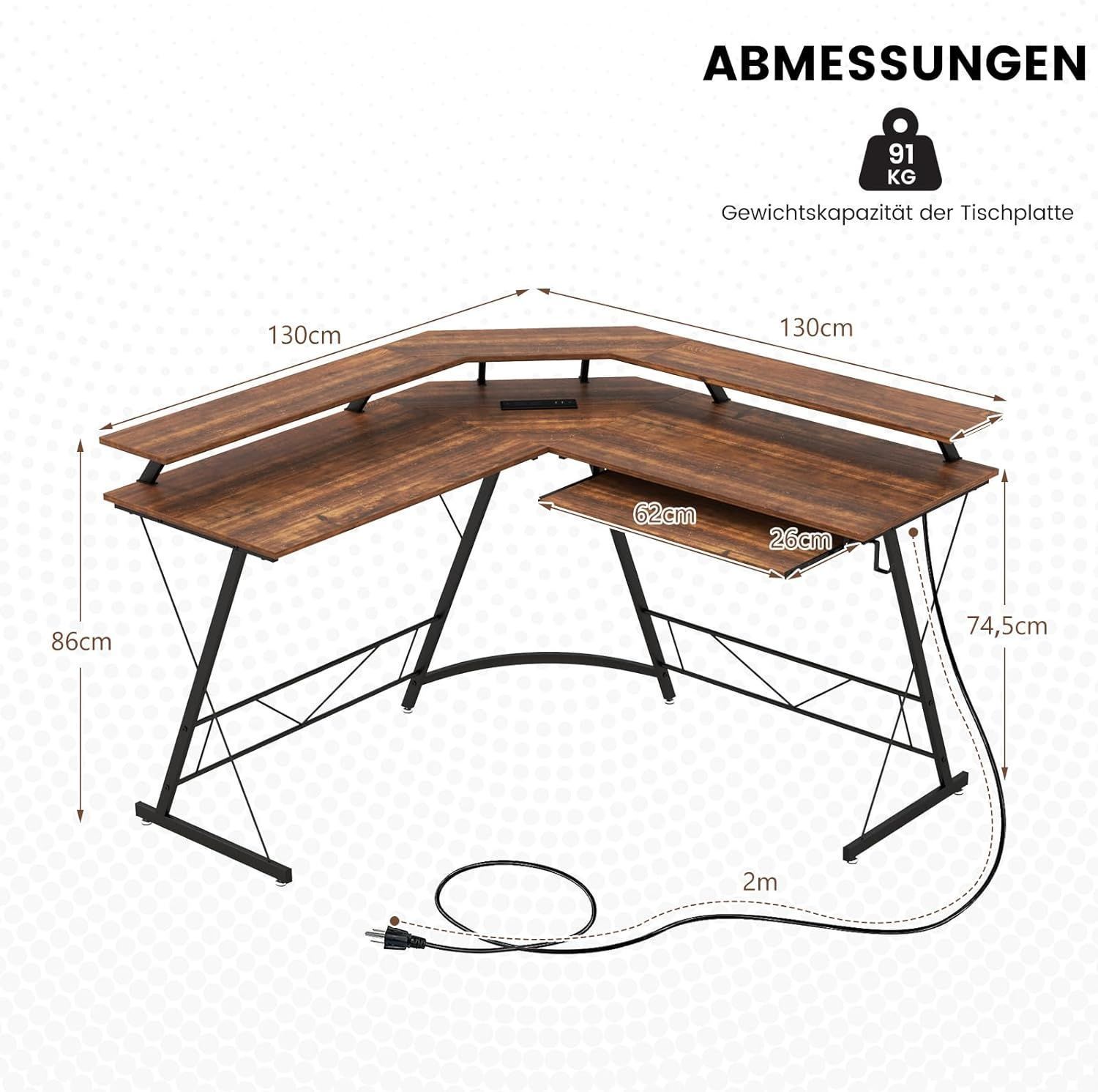 Eckschreibtisch mit Steckdose & USB-Ladeanschluss, L-förmiger Schreibtisch, Ecktisch