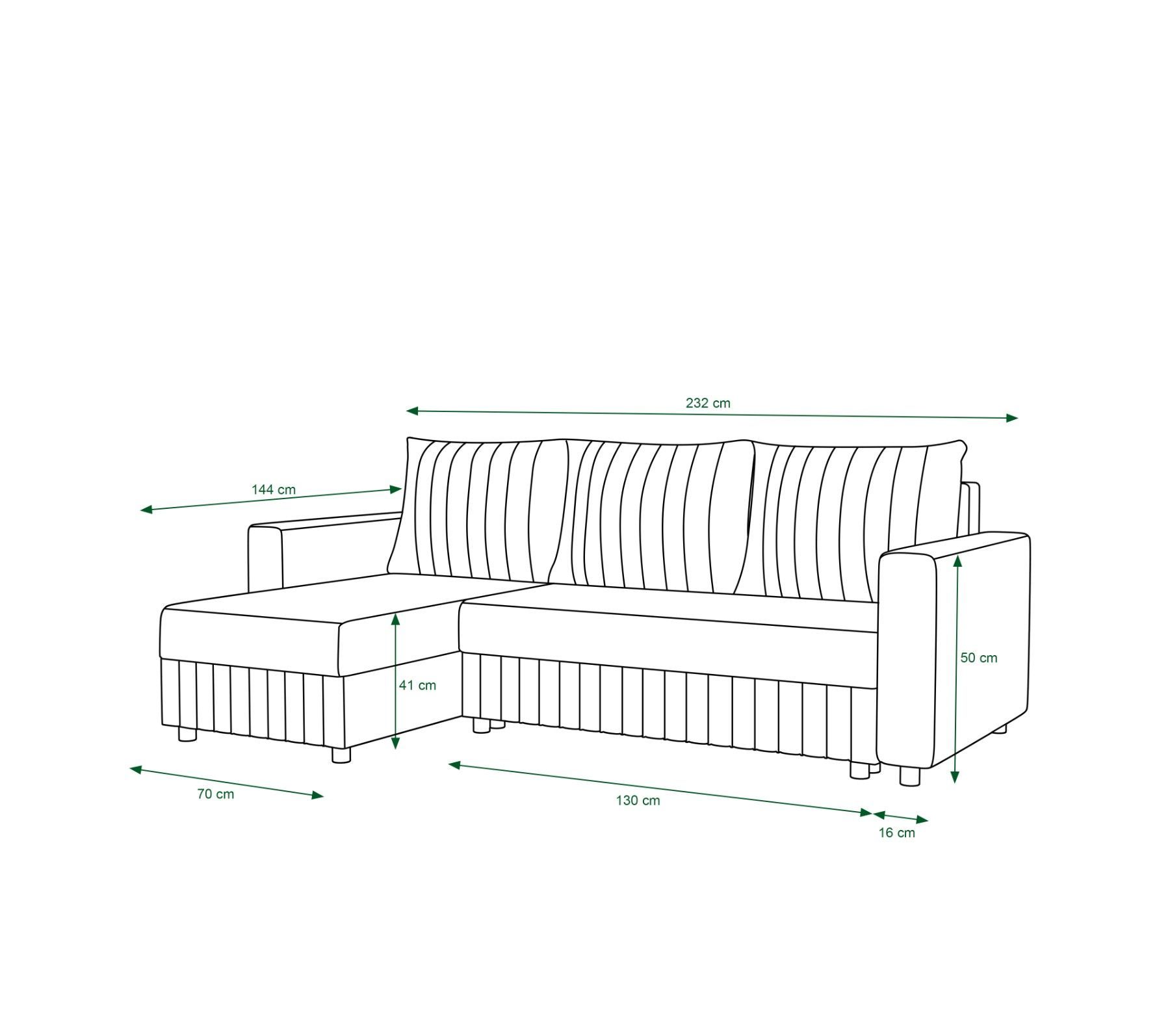 Der Auktionsgegenstand ist: Folgend finden Sie eine Beschreibung und Spezifikationen des Produkts. ASTRA Ecksofa, mit klaren Linien gestaltet, ist eine ausgezeichnete Wahl für Ihre Schlafzimmer. Die schlichte Eleganz wird alltägliche Erholung zu etwas Besonderem machen. Zusatzinformation: Schlaffunk