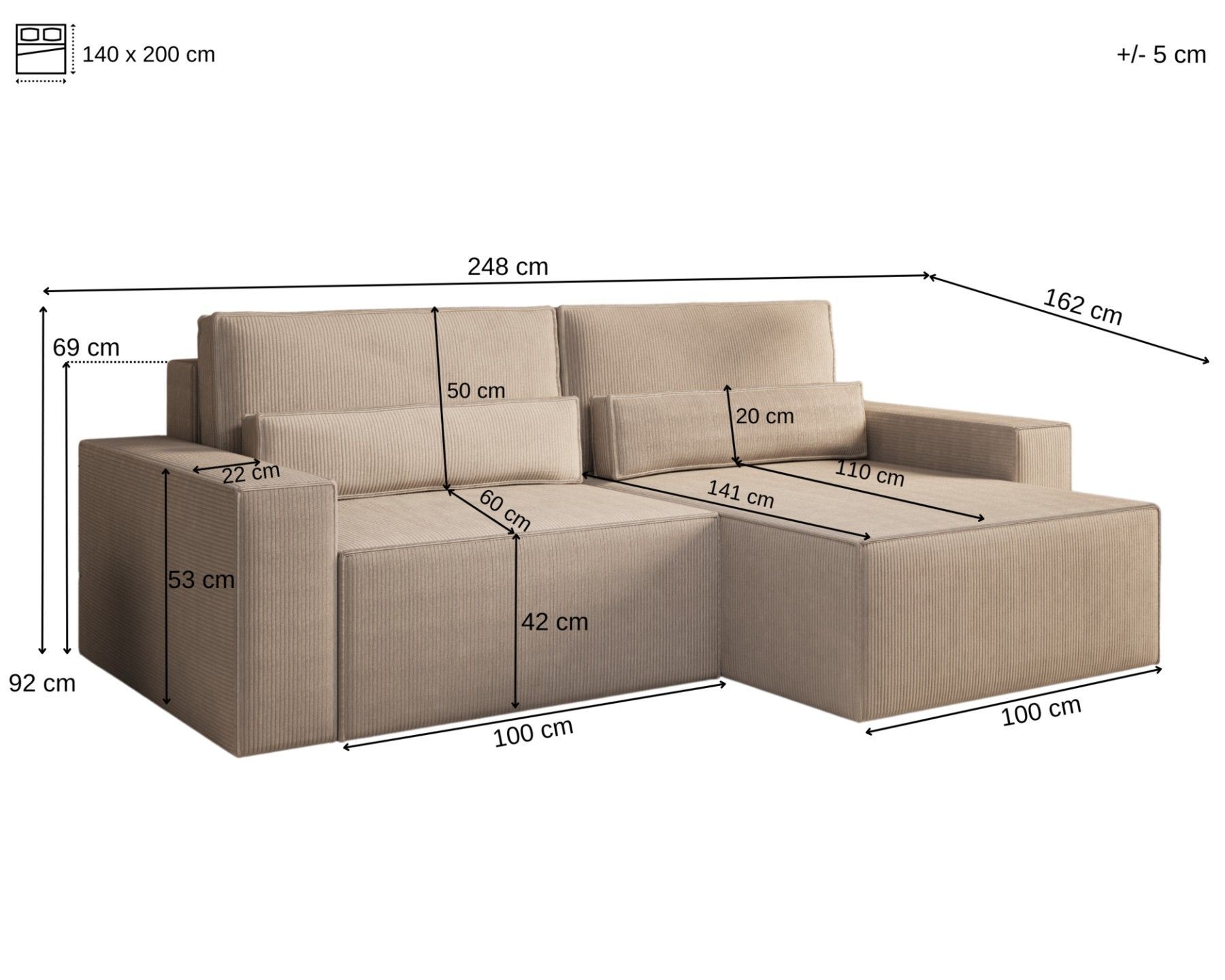 Ecksofa DENVER MINI Dunkelbeige - Schlafsofa Sofagarnitur Sofa Eckcouch L-Form