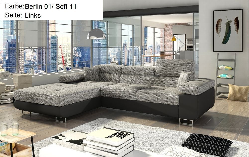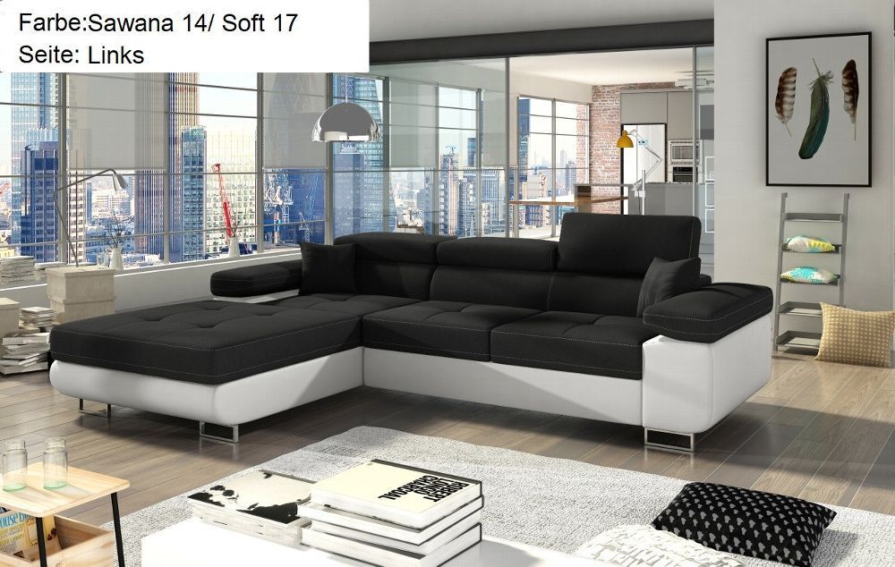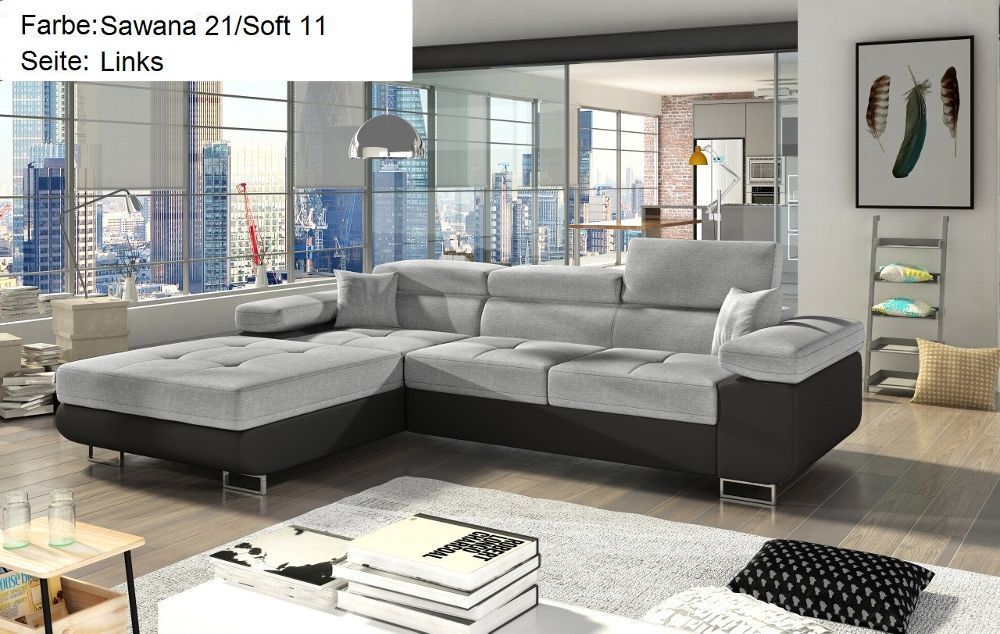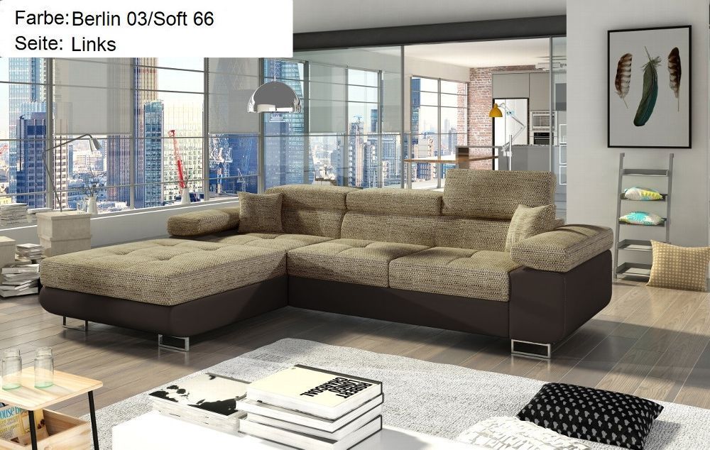Ecksofa Diego mit Schlaffunktion Bettkasten Farbauswahl