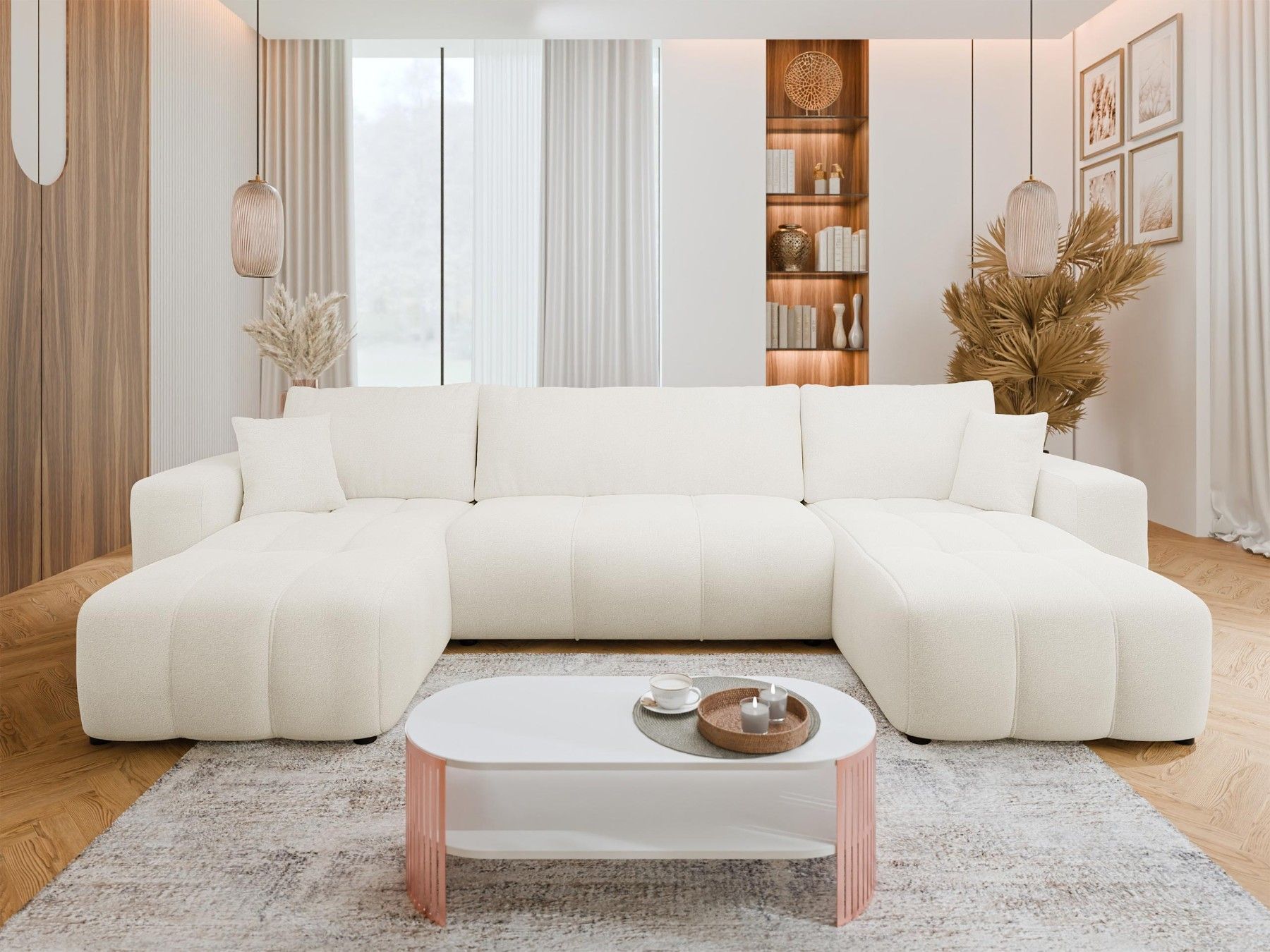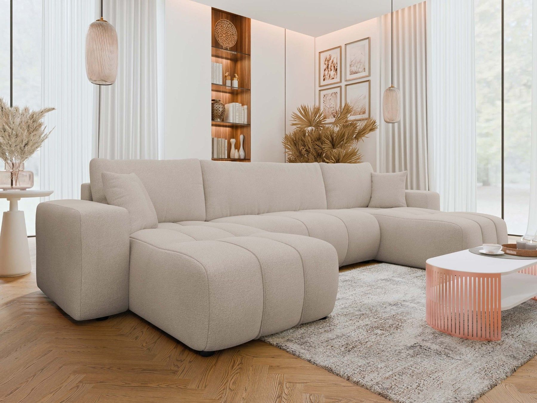 • Ecksofa Furyn U Boucle mit Schlaffunktion und Bettkasten Sofa Couchgarnitur M24
