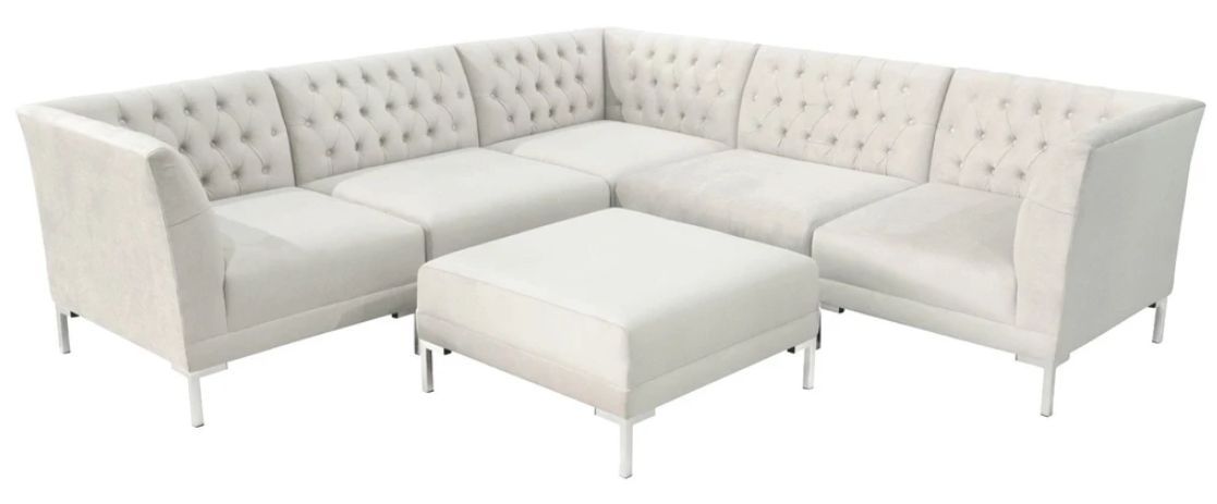 Ecksofa Hocker Creme Weiß Big Textill Stoff Chesterfield Sofas Luxus Möbel 2tlg