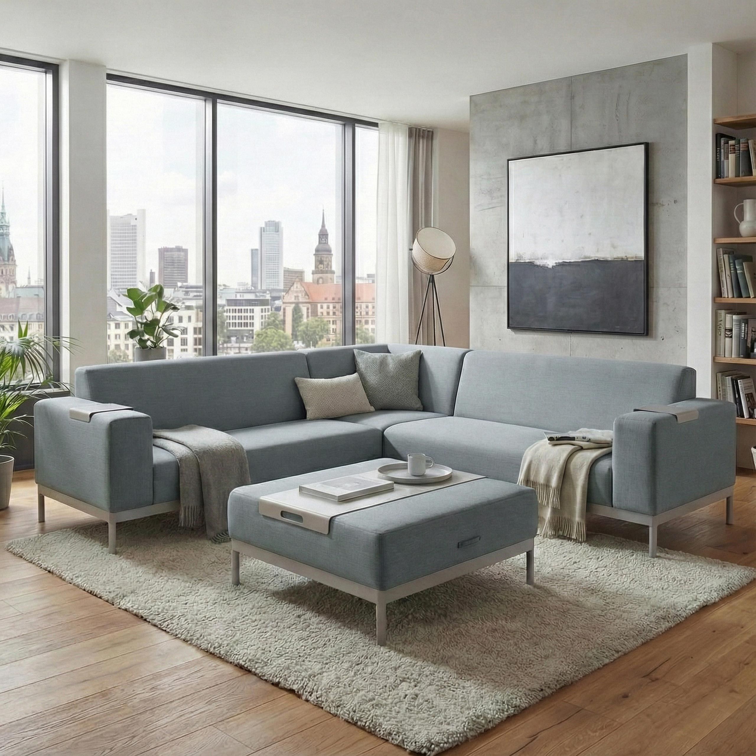 Mendler Ecksofa HWC-C47, Sofa Loungesofa Couch, Stoff/Textil Indoor wasserabweisend