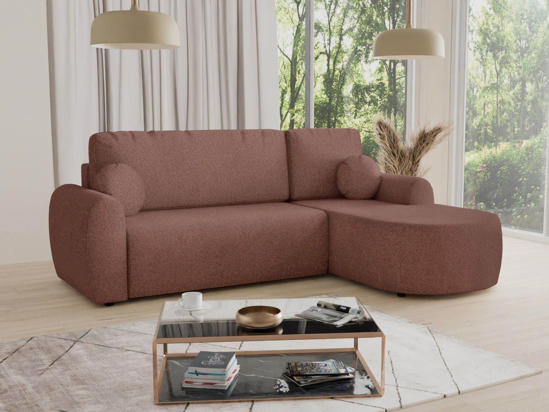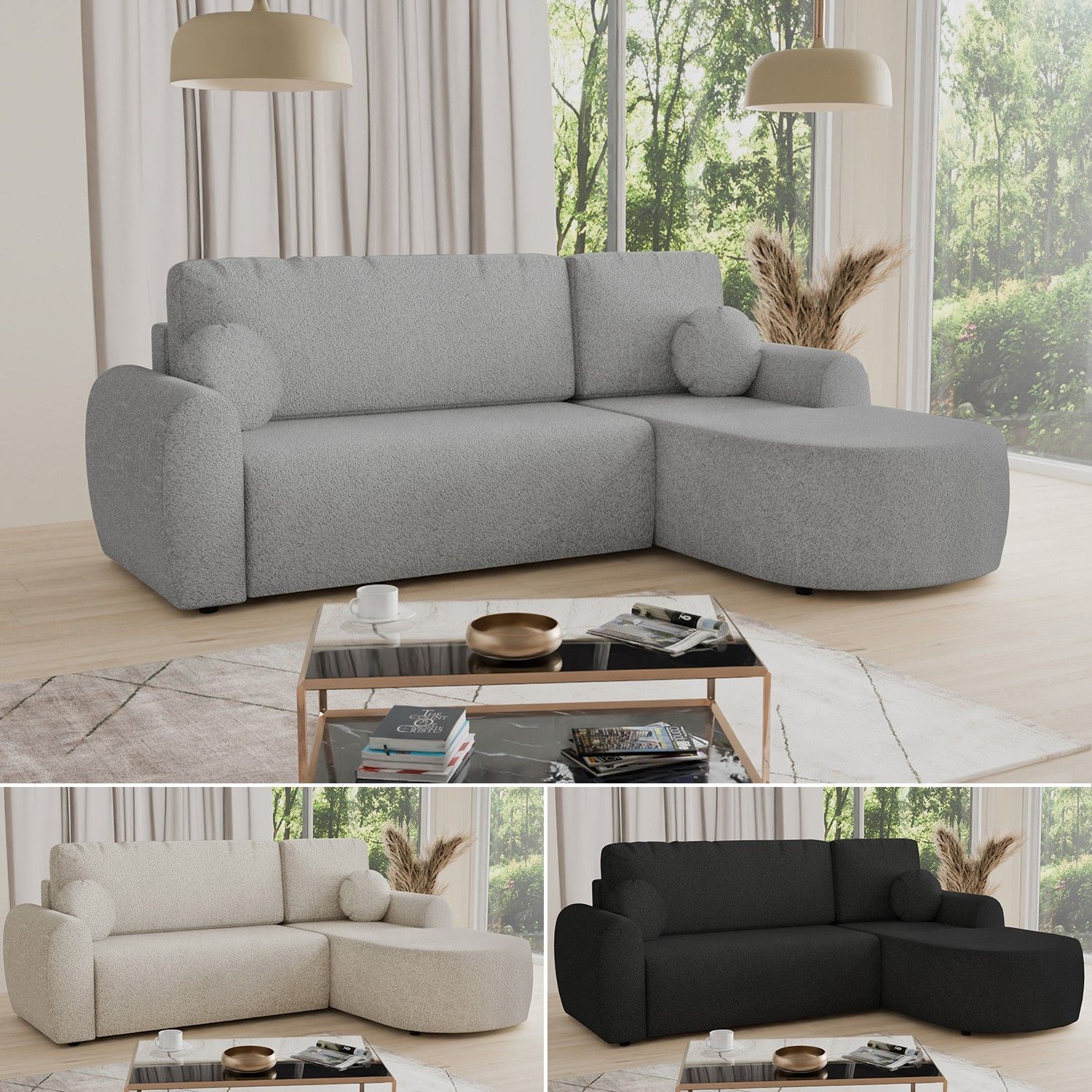 Sofnet Ecksofa Jazz mit Schlaffunktion und Bettkasten - Bouclé-Stoff - Polstersofa Couch