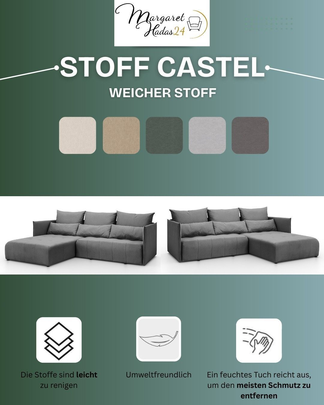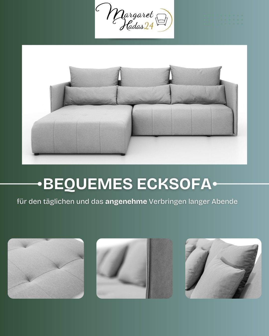 Ecksofa L Form Hanna 246x188cm Schlaffunktion Bettkasten Couch links oder rechts