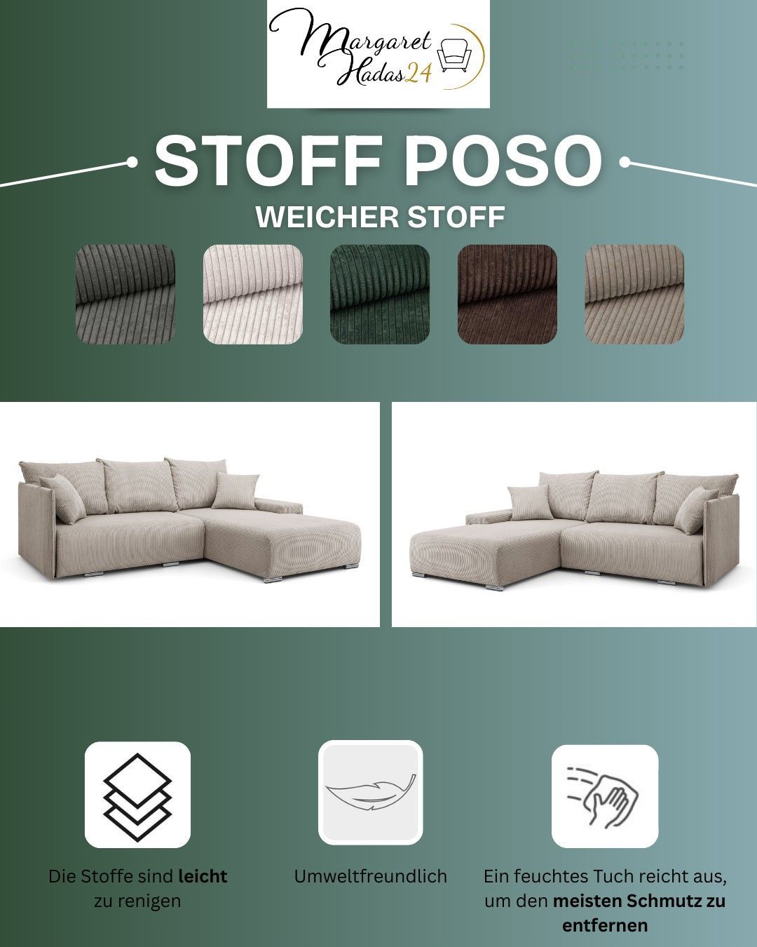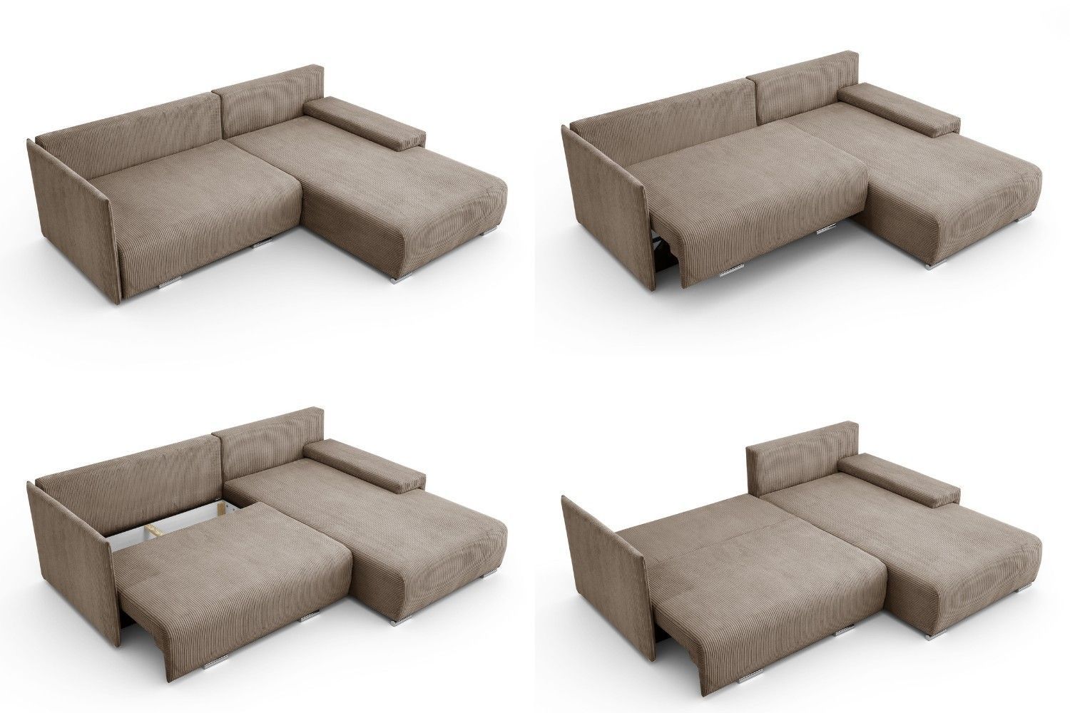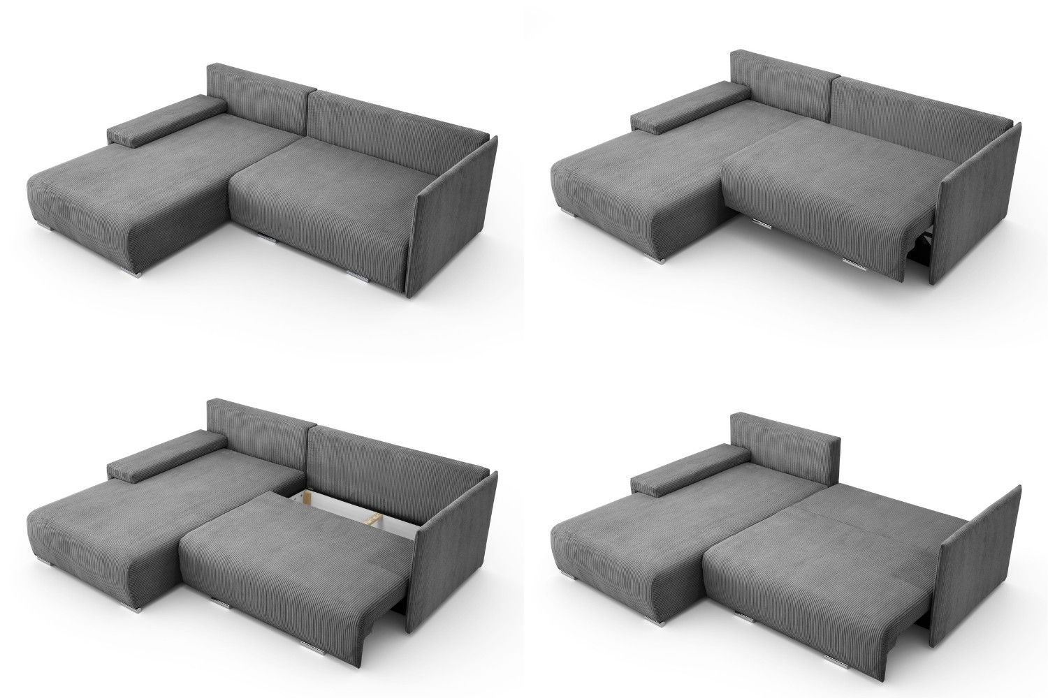 Ecksofa L Form Lauren 246 x 188 cm Schlaffunktion Bettkasten rechts oder links