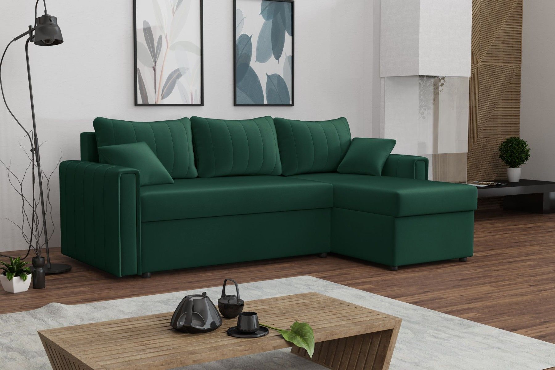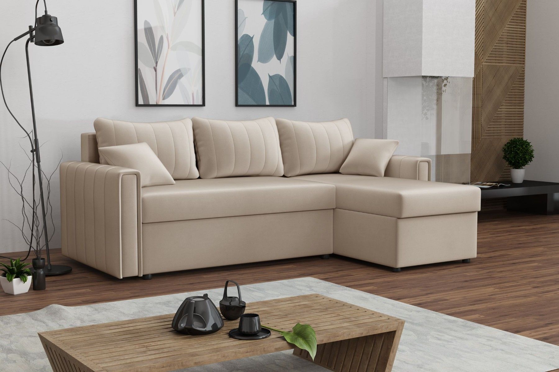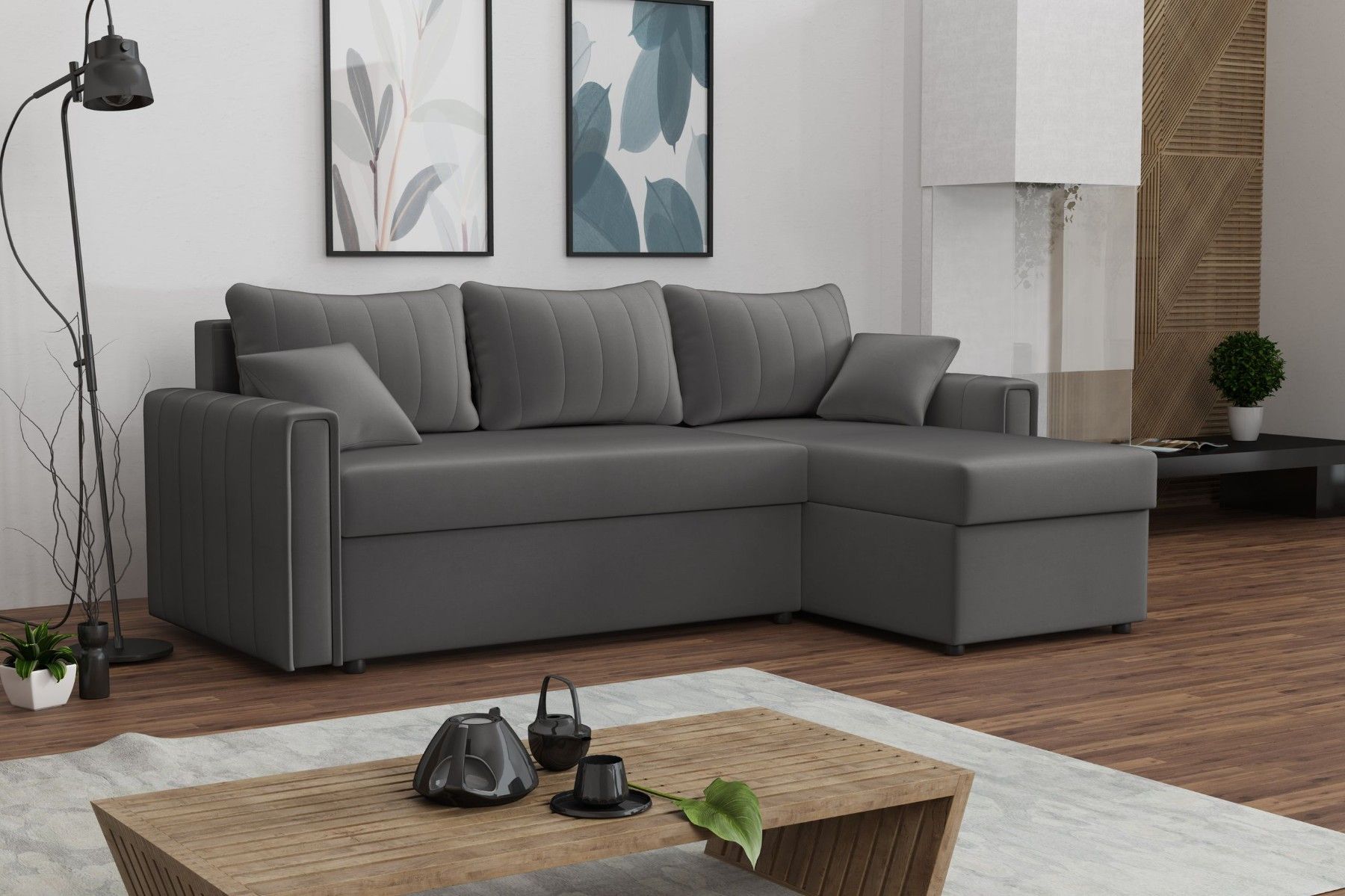 Ecksofa mit Schlaffunktion und Stauraum Entdecken Sie das stilvolle und praktische Ecksofa mit Schlaffunktion , das Komfort und Funktionalität perfekt miteinander vereint. Dieses moderne Sofa passt sich dank seines kompakten Designs ideal in jedes Wohnzimmer ein und bietet eine großzügige Schlaffläc