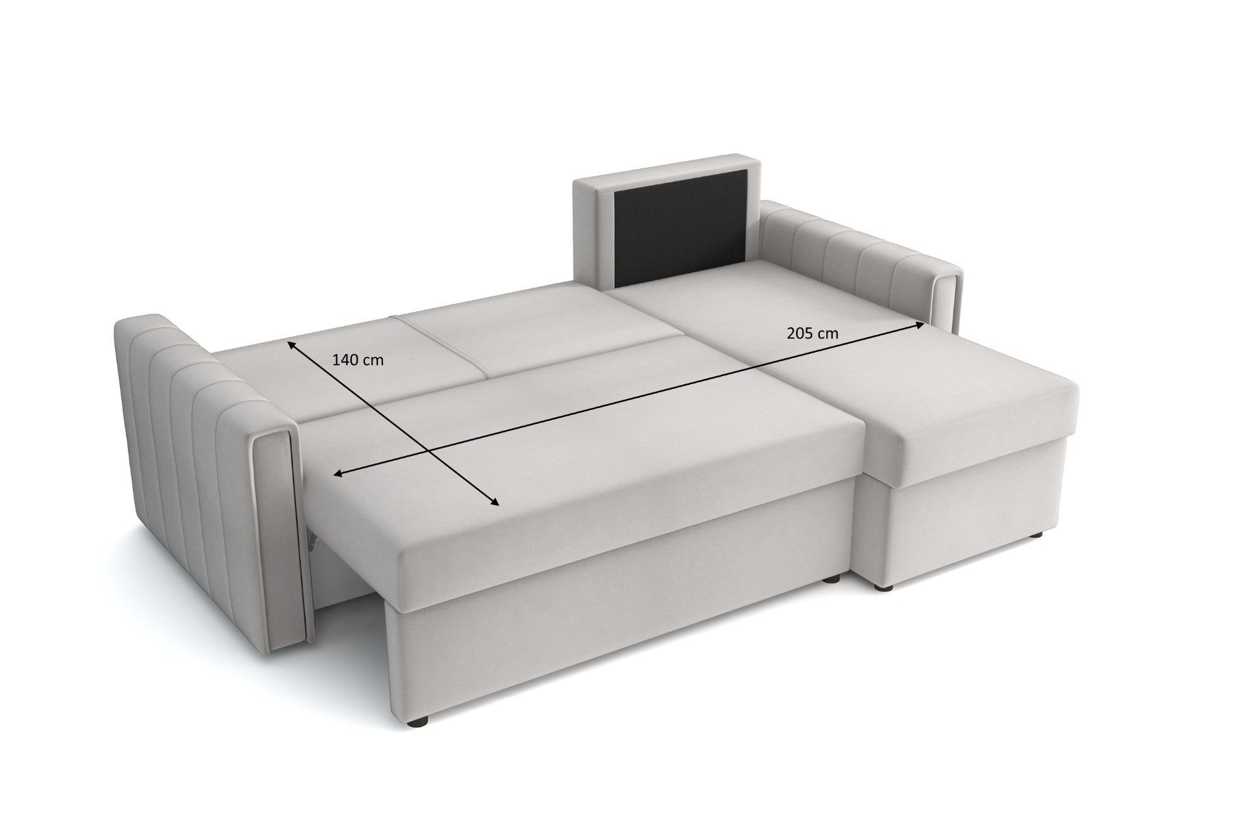 Ecksofa mit Schlaffunktion, L-form 235x144x80 cm Derwin