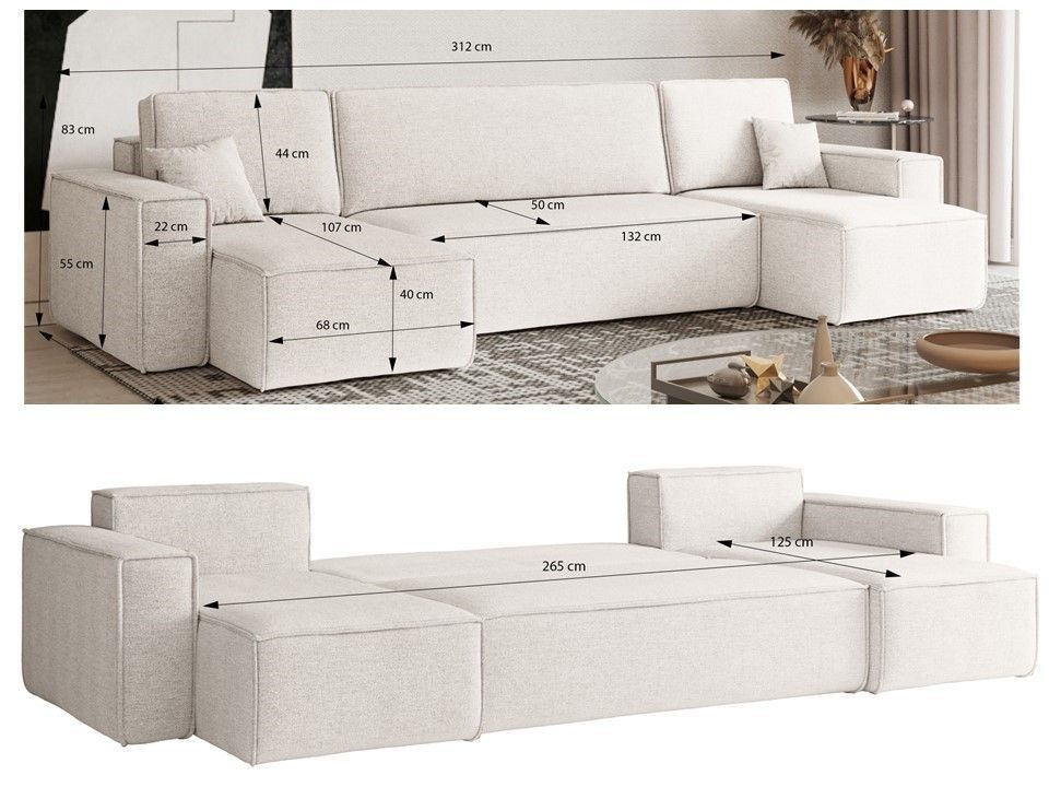 Ecksofa NUBES U-Form mit Schlaffunktion, Eckcouch mit Bettkasten Wohnlandschaft Couch