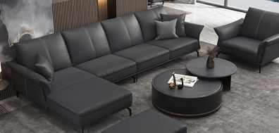 Ecksofa + Sessel Ledersofa Couch Wohnlandschaft Garnitur Design Modern Sofa Sitz