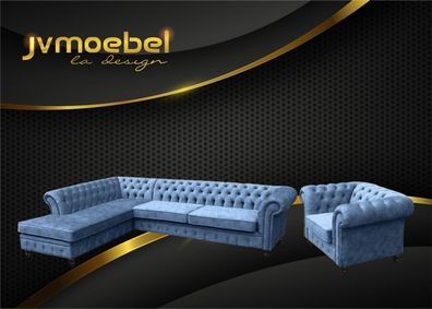 Ecksofa Sofa Couch Polster Chesterfield Design Luxus Möbel Garnitur mit Sessel