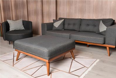 Exklusive Wohnzimmer Sitzgarnitur Stilvolles Ecksofa Sessel Pouf