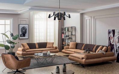 Braun-Beige Wohnzimmer Sitzgarnitur Ecksofa Wohnlandschaft Sessel 2tlg