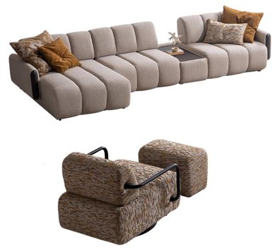Garnitur Sofa Ecksofa L form Sessel Polstersofa Beige Couch Stoffsofa