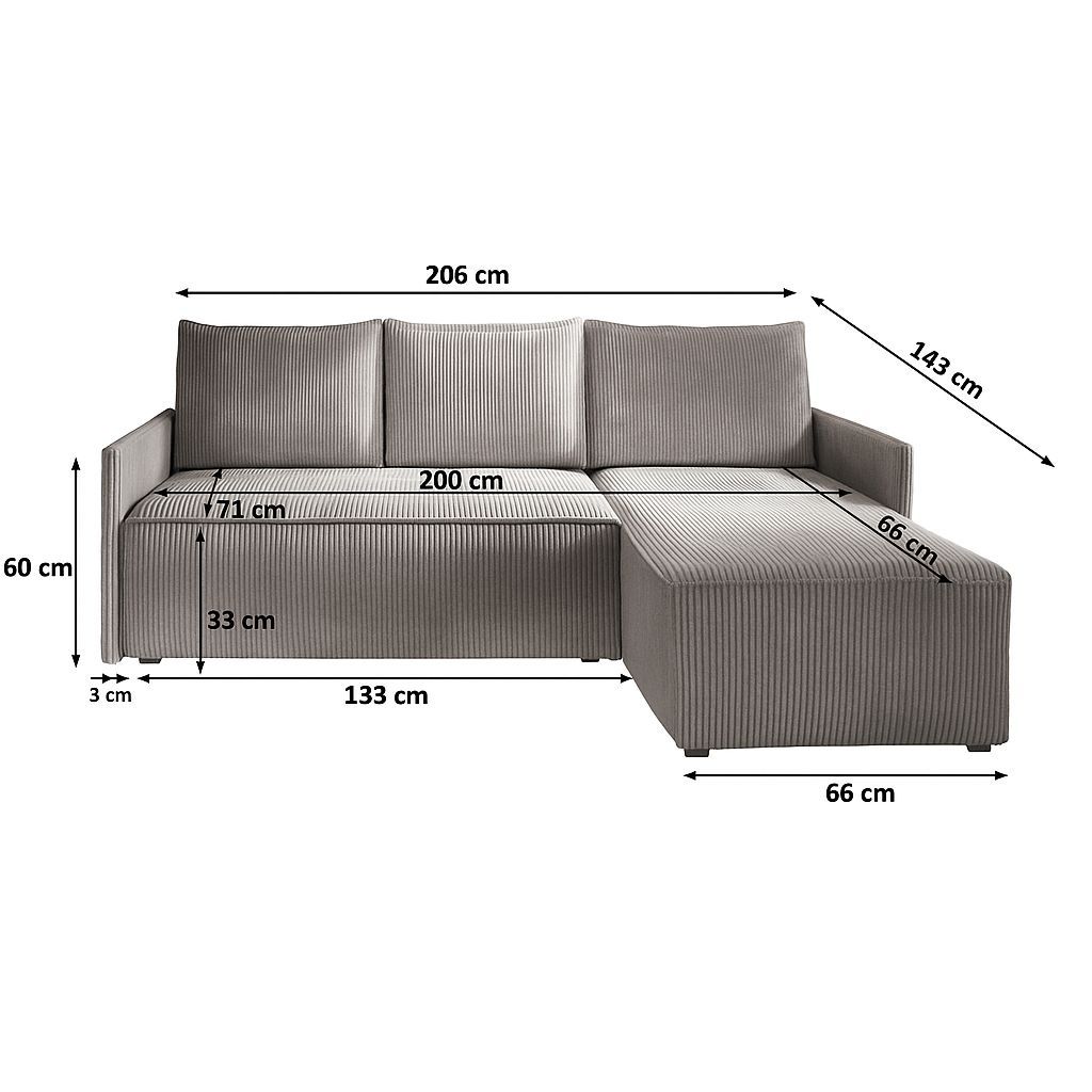 Ecksofa NISSI 206 cm Schlaffunktion mit Bettkasten POSO sofa Bonellfedern