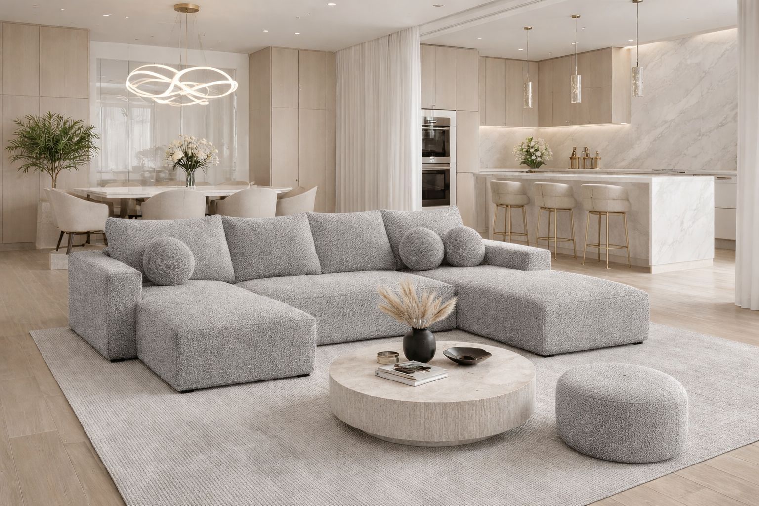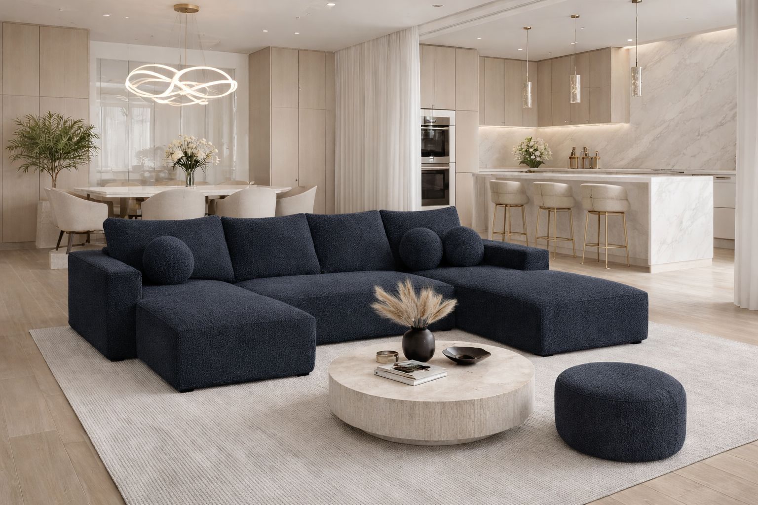 Ecksofa NOYO U 295 cm Schlaffunktion mit Bettkasten sofa Bonellfedern boucle
