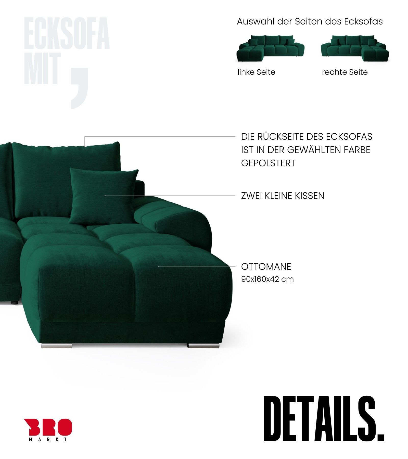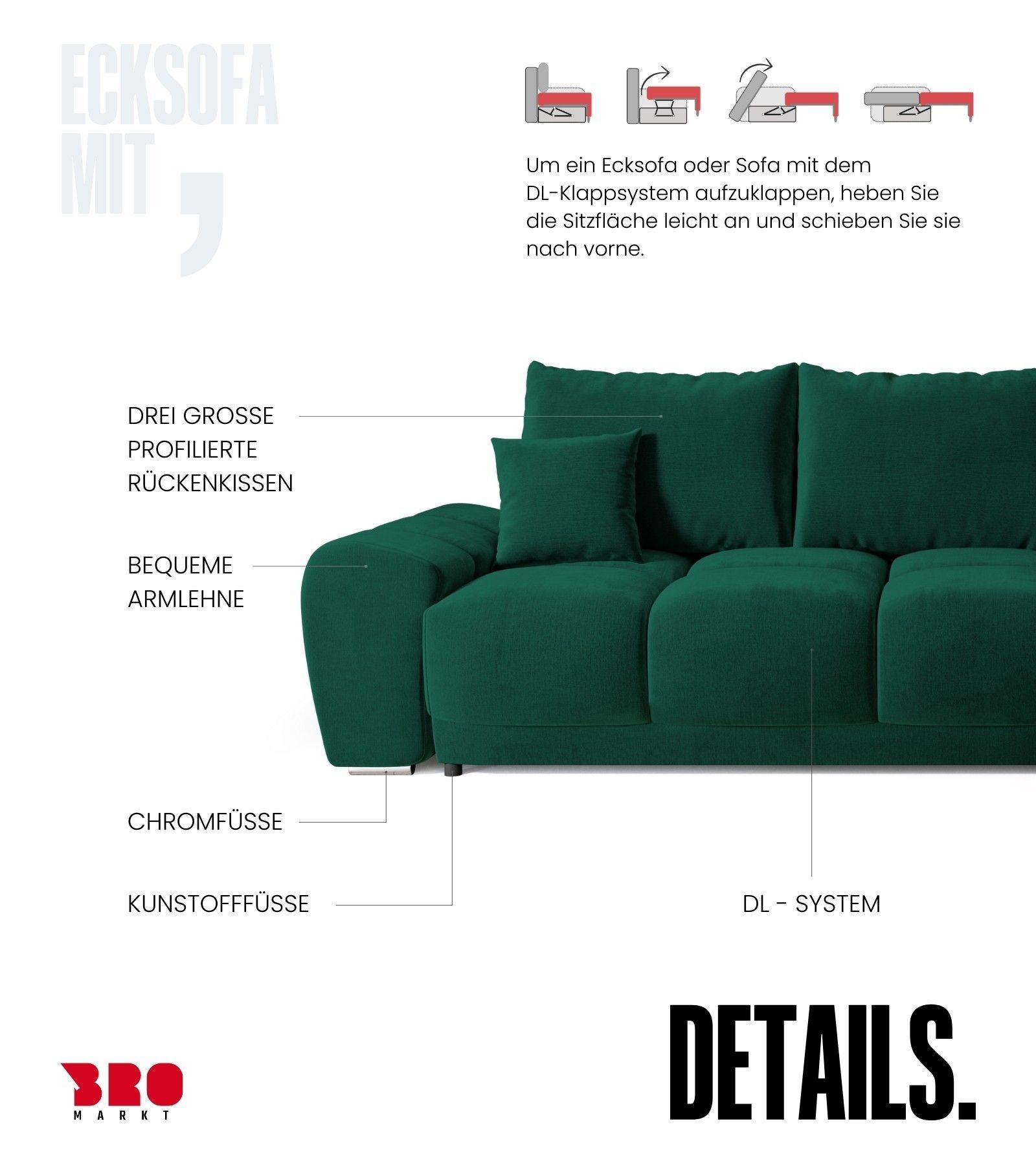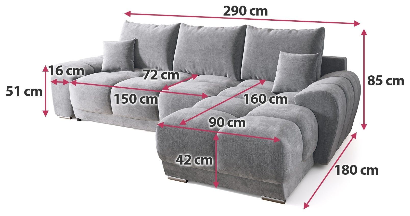 Die Couch ist sehr Schick, groß, pflegeleichter Stoff und mit Schlaffunktion ?? dazu abnehmbare, waschbare Kissenbezüge, die Lieferung erfolgte pünktlich.