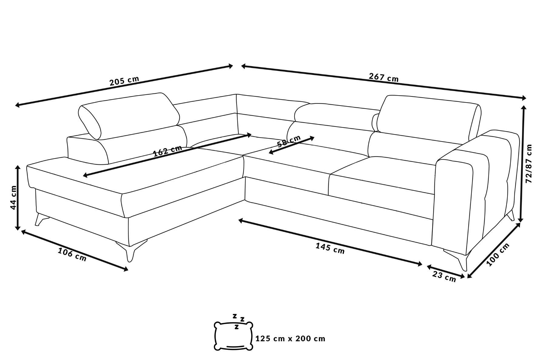 Ecksofa Palermo L-Form rechts oder links mit Schlaffunktion Bettkasten 267 cm