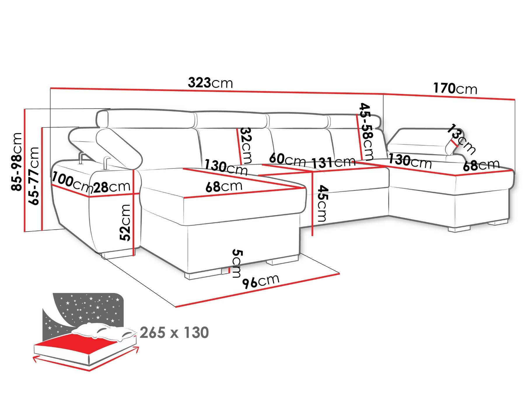 265x130 cm