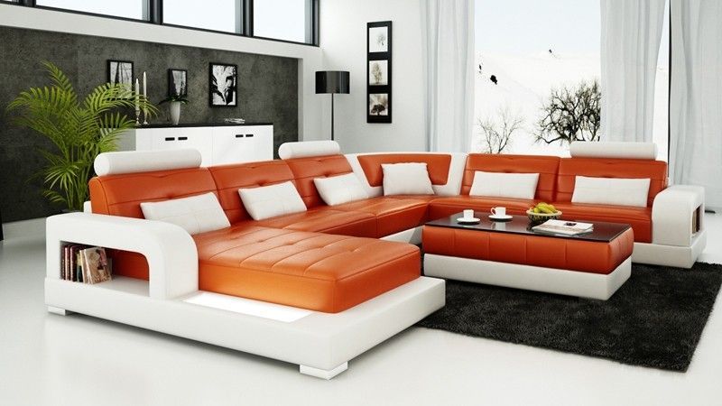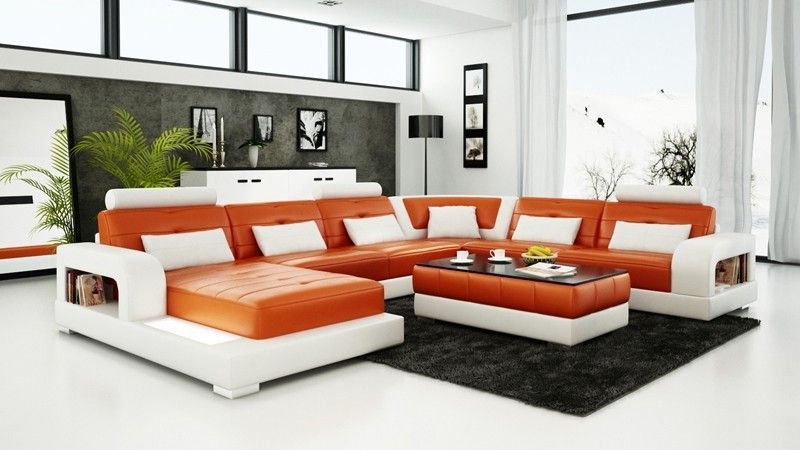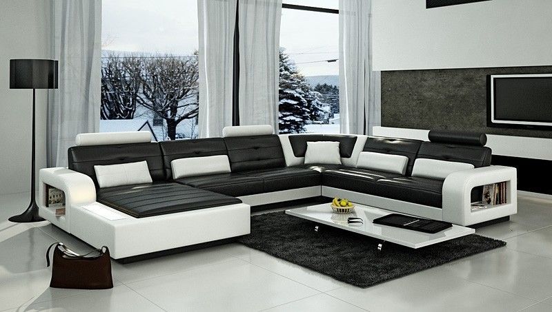 Ecksofa Polster Couch Leder Ecksofa Wohnlandschaft U-Form