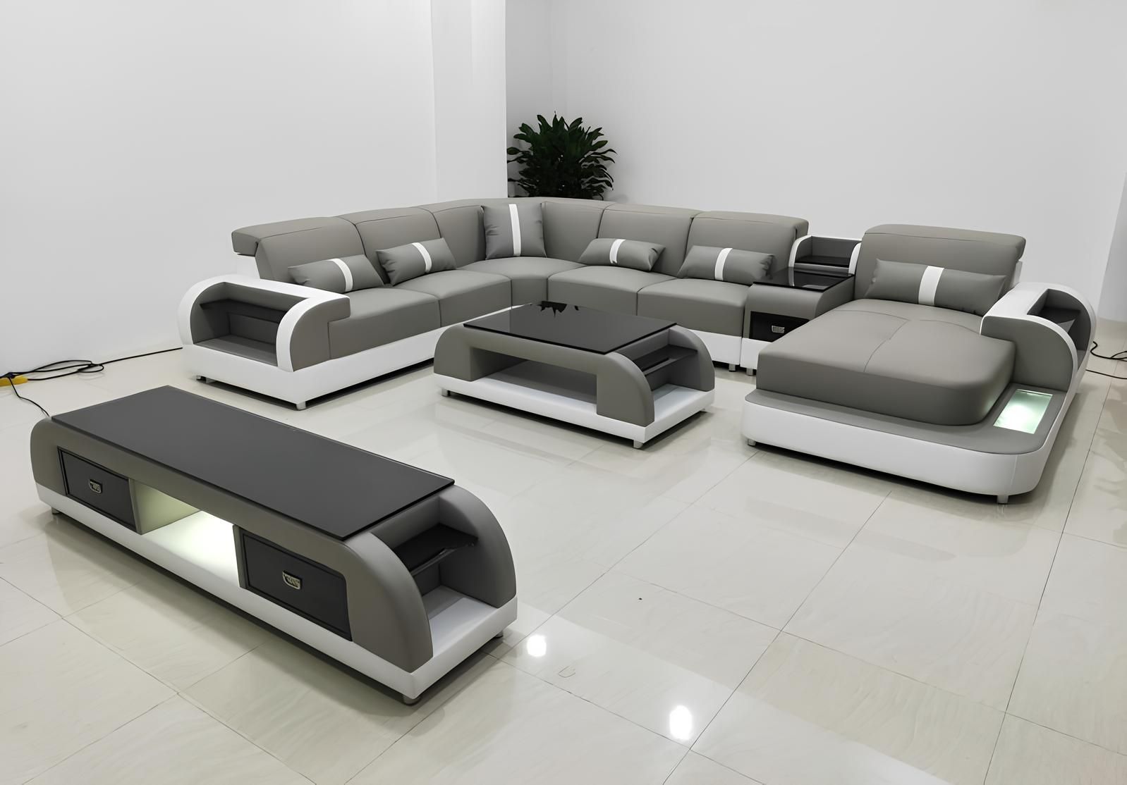 Ecksofa Polster Ecksofa U Form Couchtisch Sideboard Ledersofa Wohnlandschaft Neu