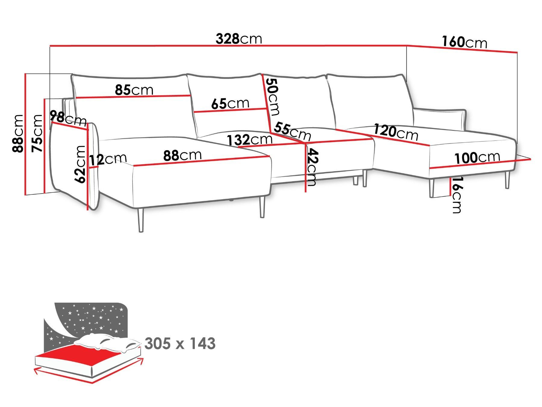 305x143 cm