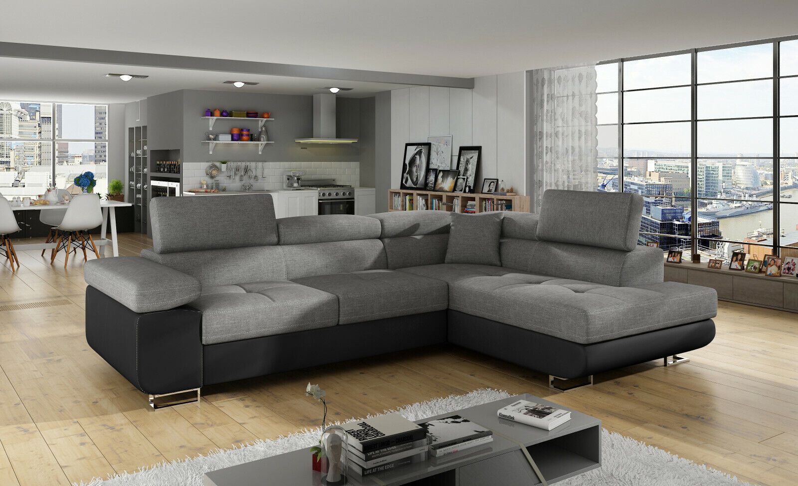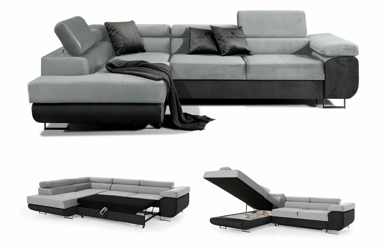 Ecksofa Schlafsofa GRAU/ Schwarz L-FORM SOFA Wohnlandschaft Stauraum Lagernd