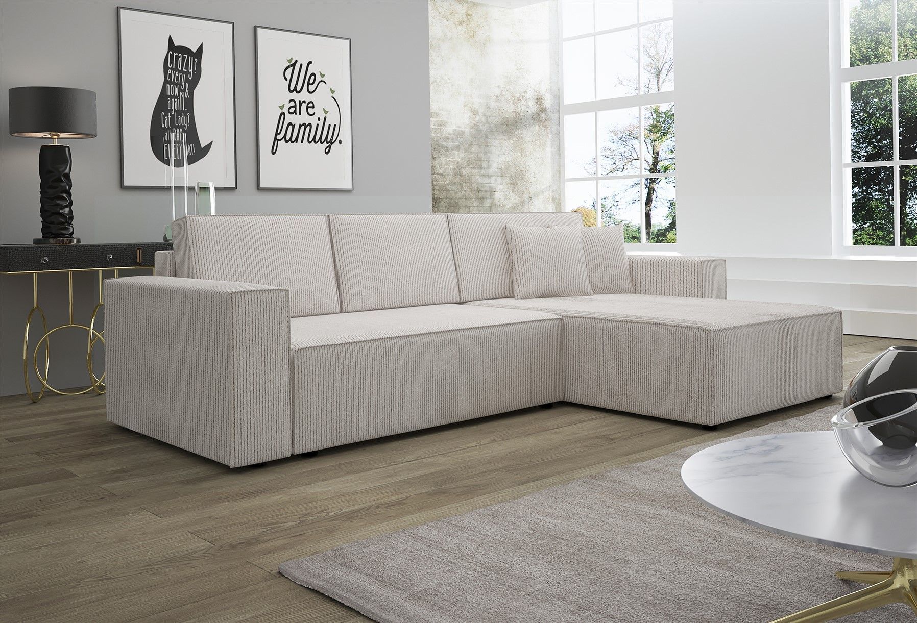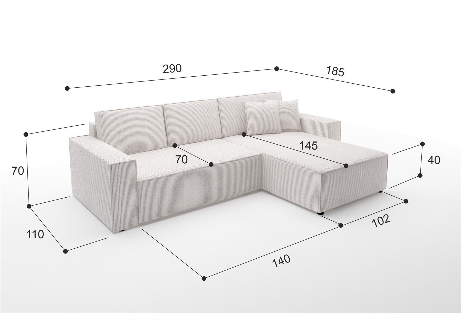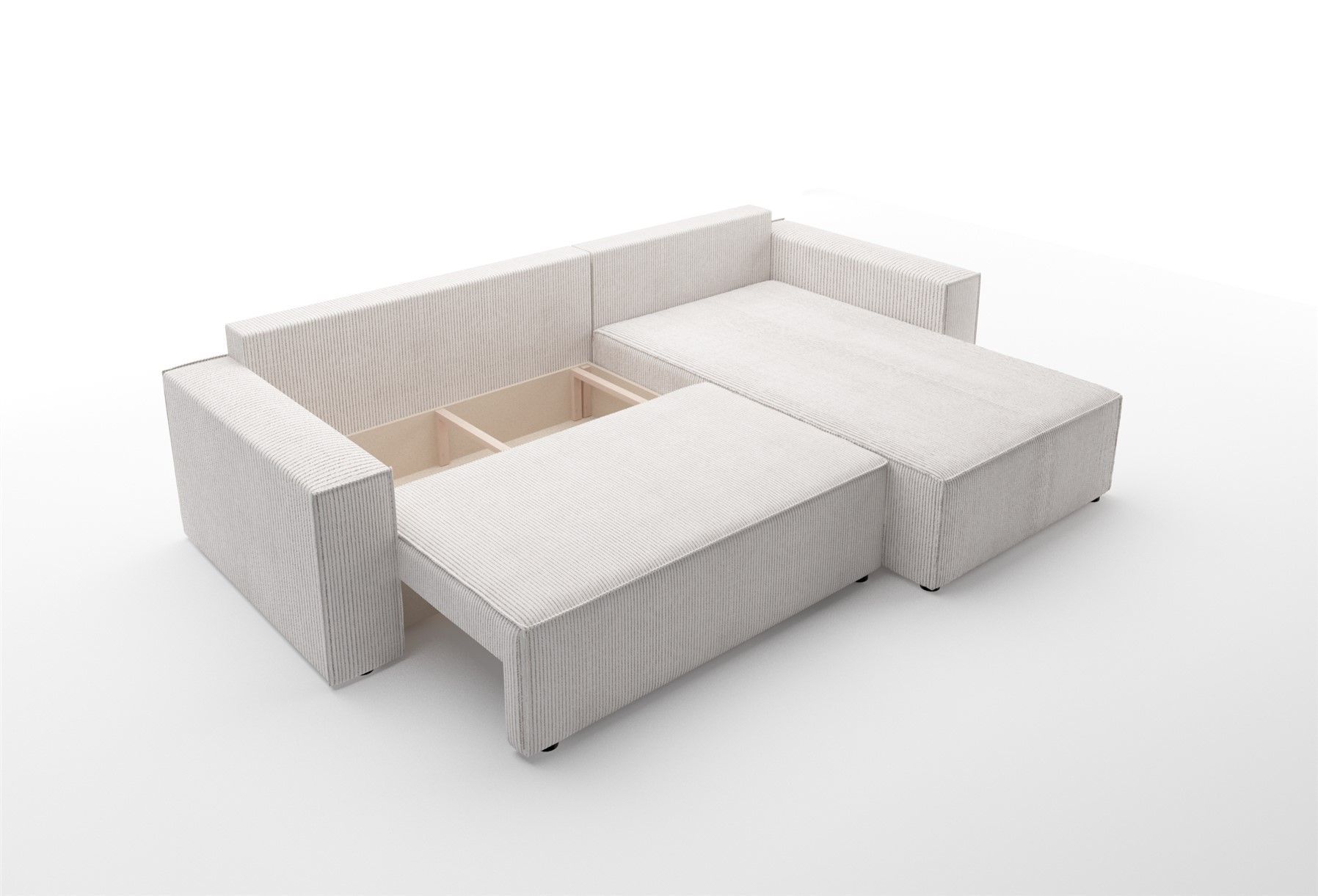 Ecksofa Schlafsofa Sofa CONOR Stoff Altweiss Ottomane Rechts