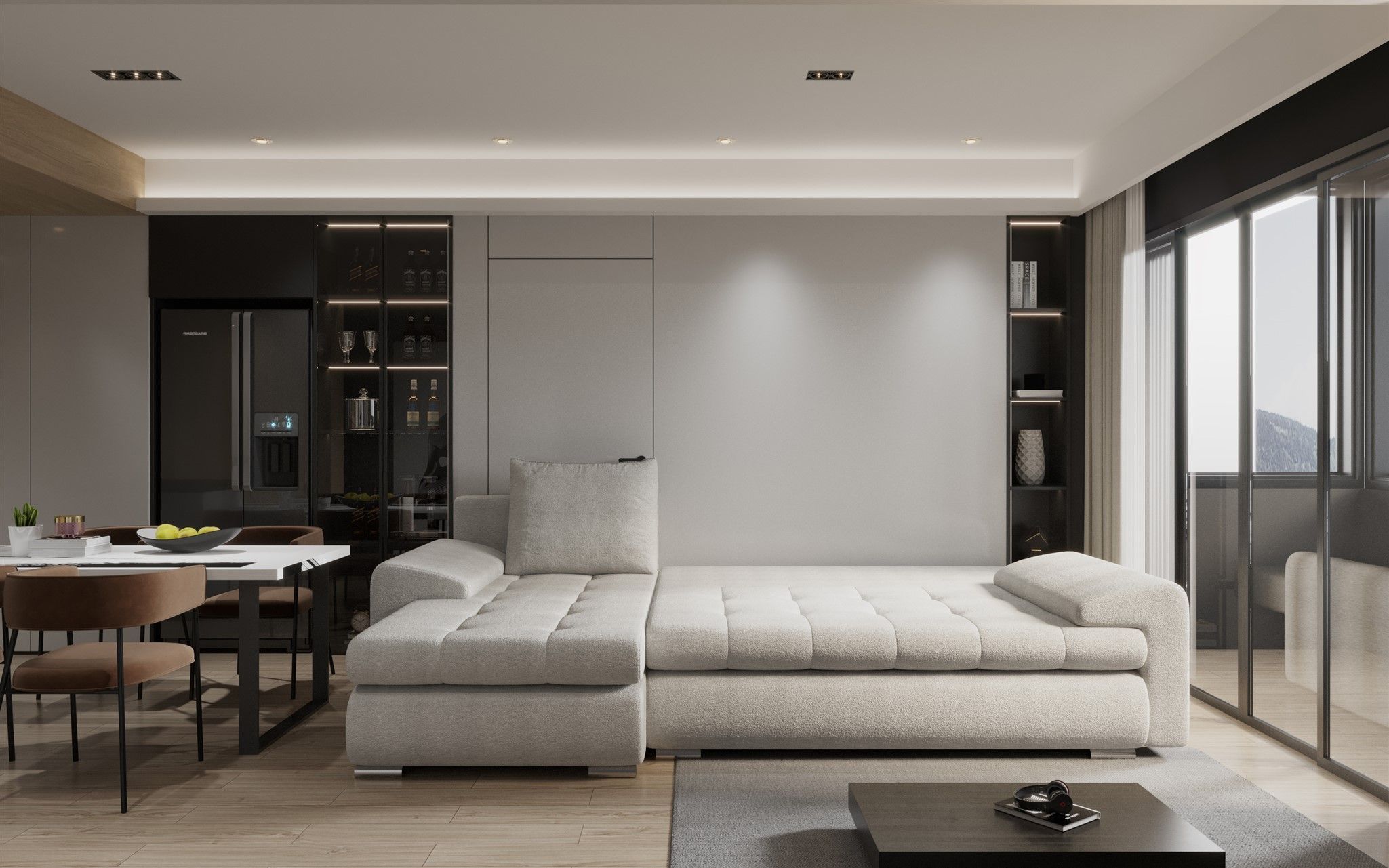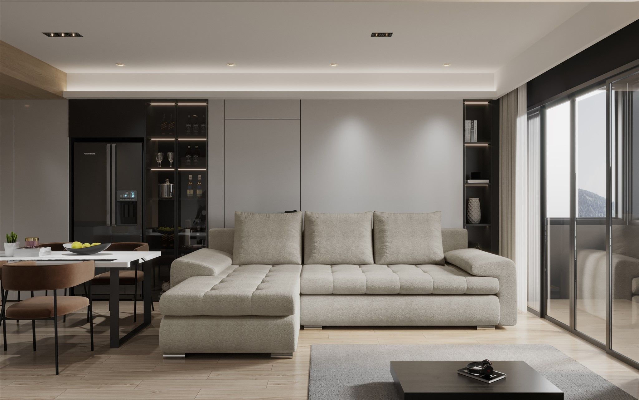 Ecksofa Sofa Hecktor mit Schlaffunktion Stoff Abriamo Sand Ottomane Links