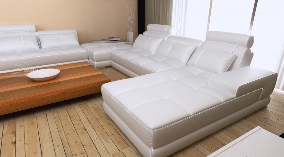 Ecksofa Sofa mit USB Wohnlandschaft Ledersofa XXL Designer Sofas Wolfhagen Weiß