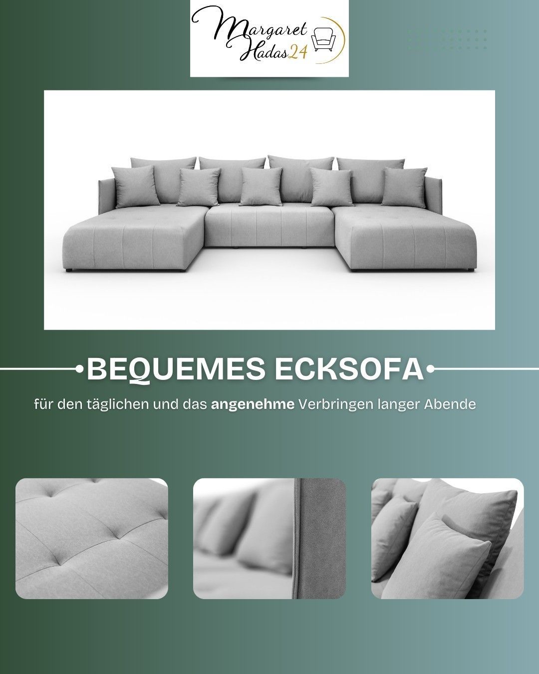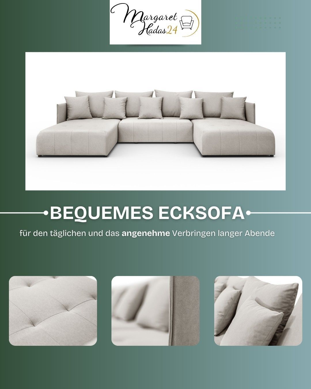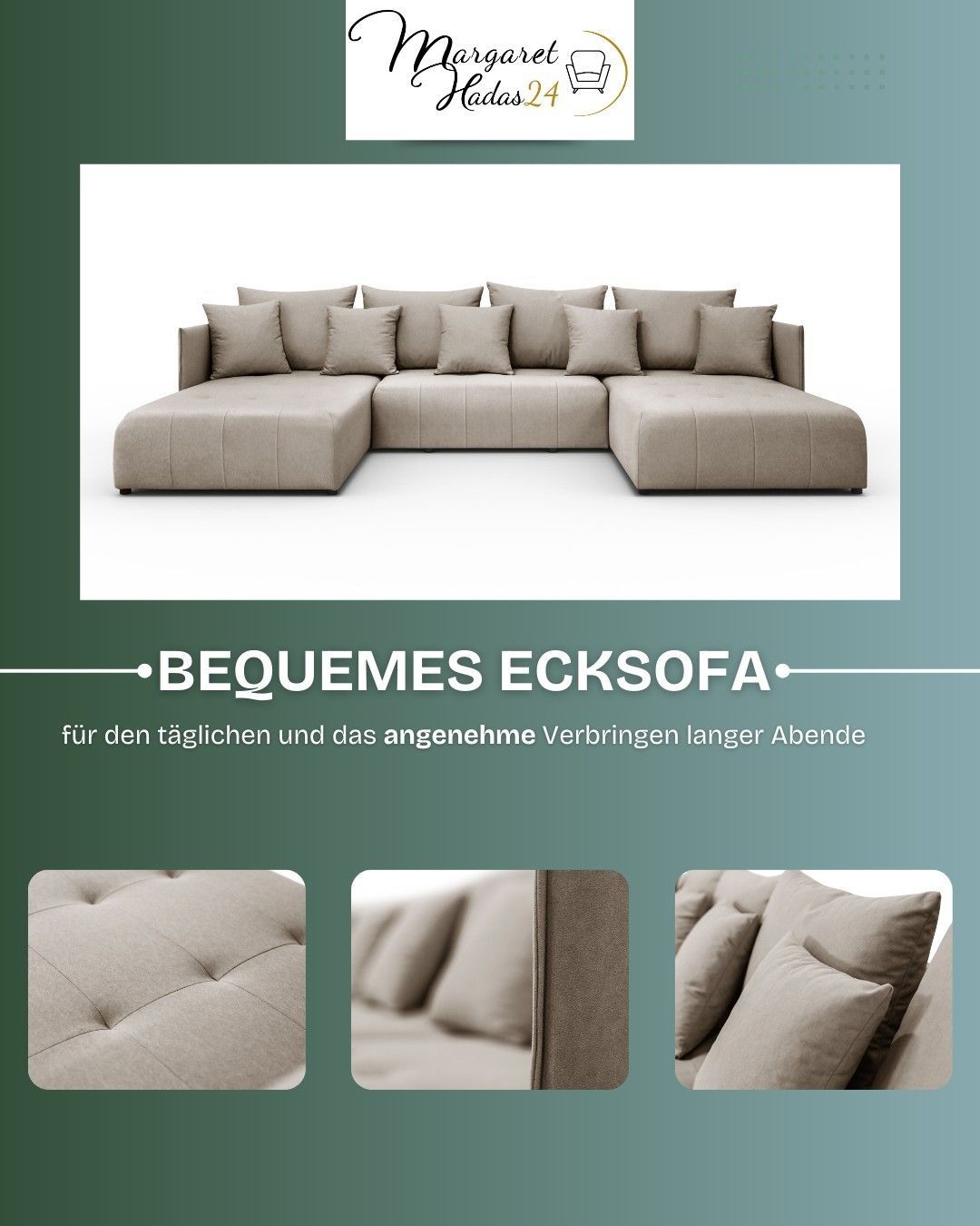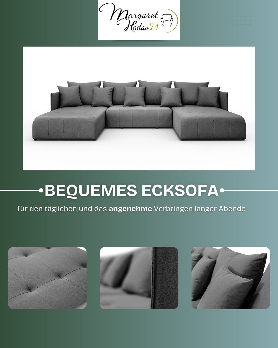 Ecksofa U Form Hanna 348x188cm Schlaffunktion Bettkasten 5 Sitzer Big Sofa Couch